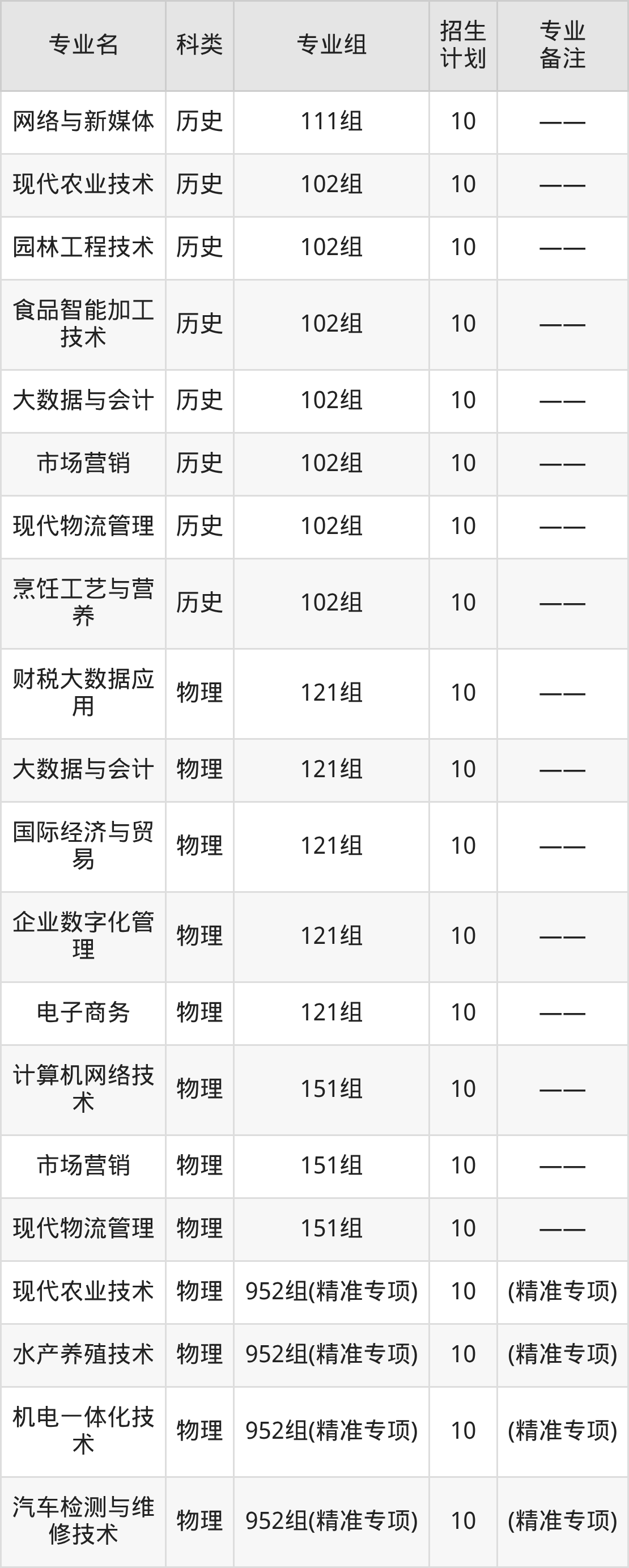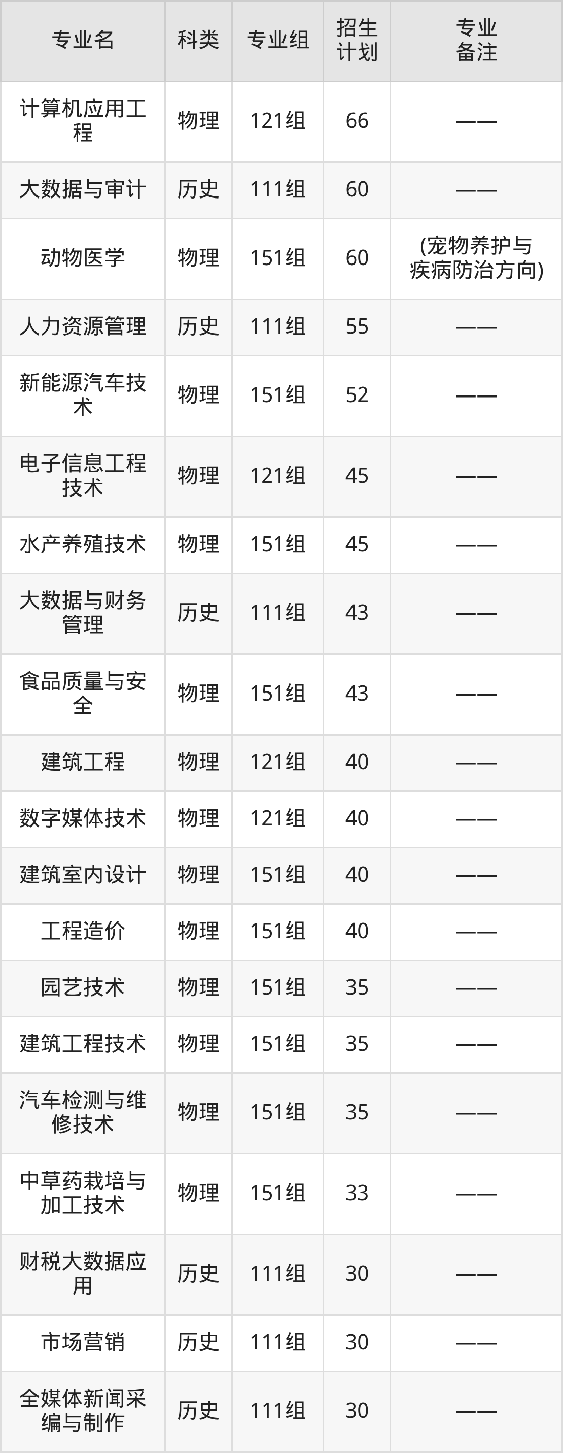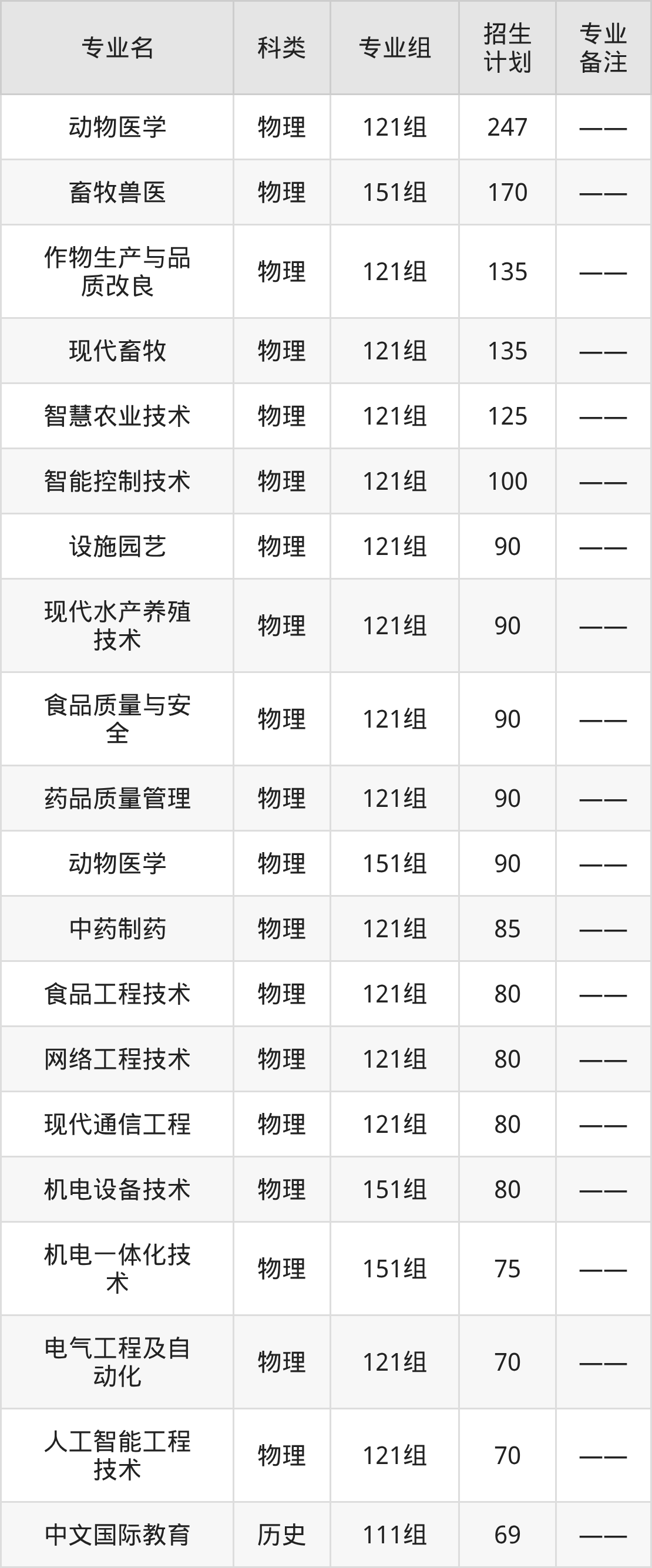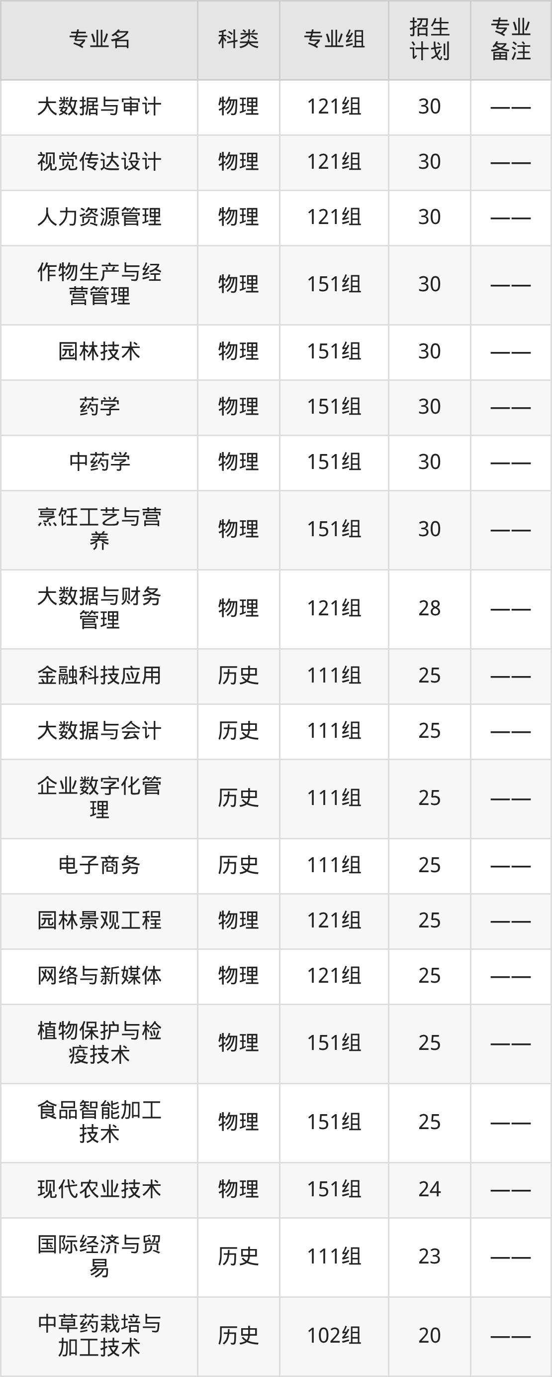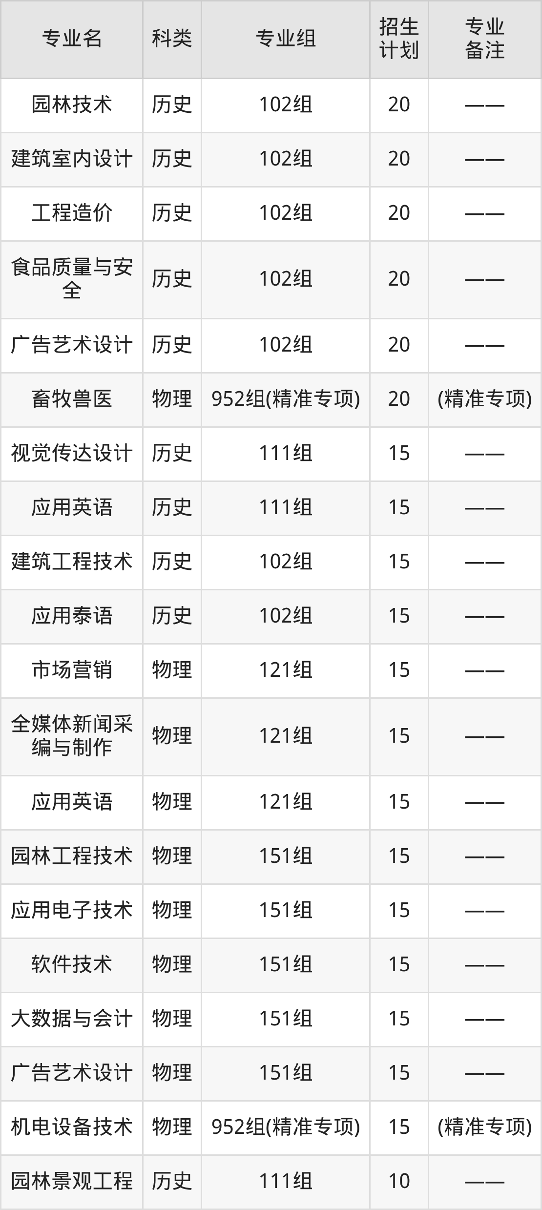 广西农业职业技术大学2025全国各省招生计划详情见下: