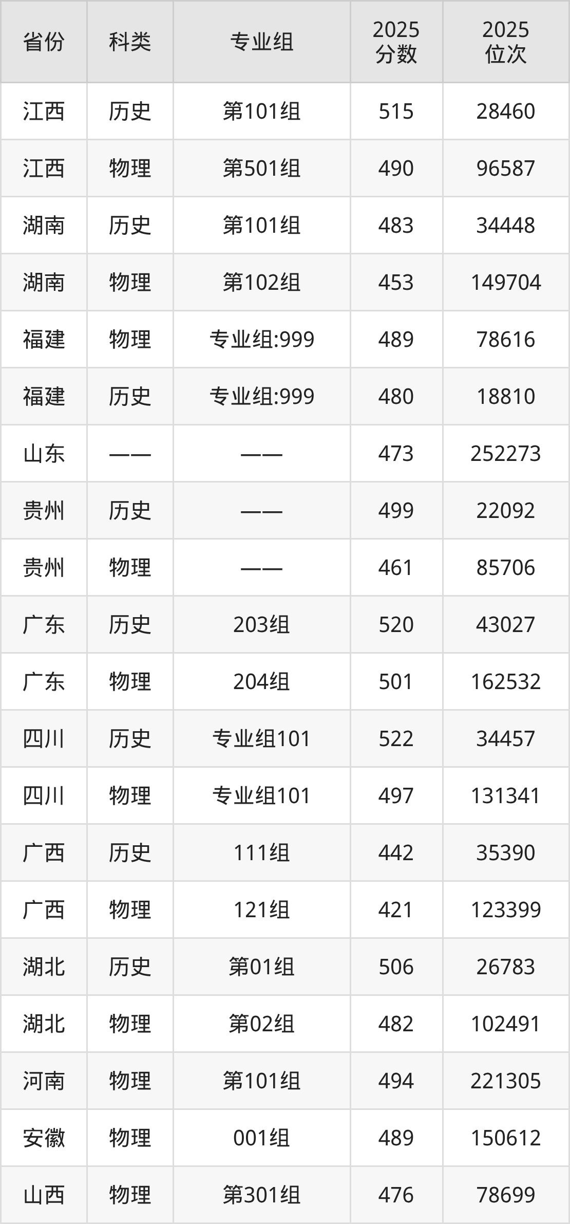 除上述省份外,广西农业职业技术大学2025各省录取最低分详情见下: