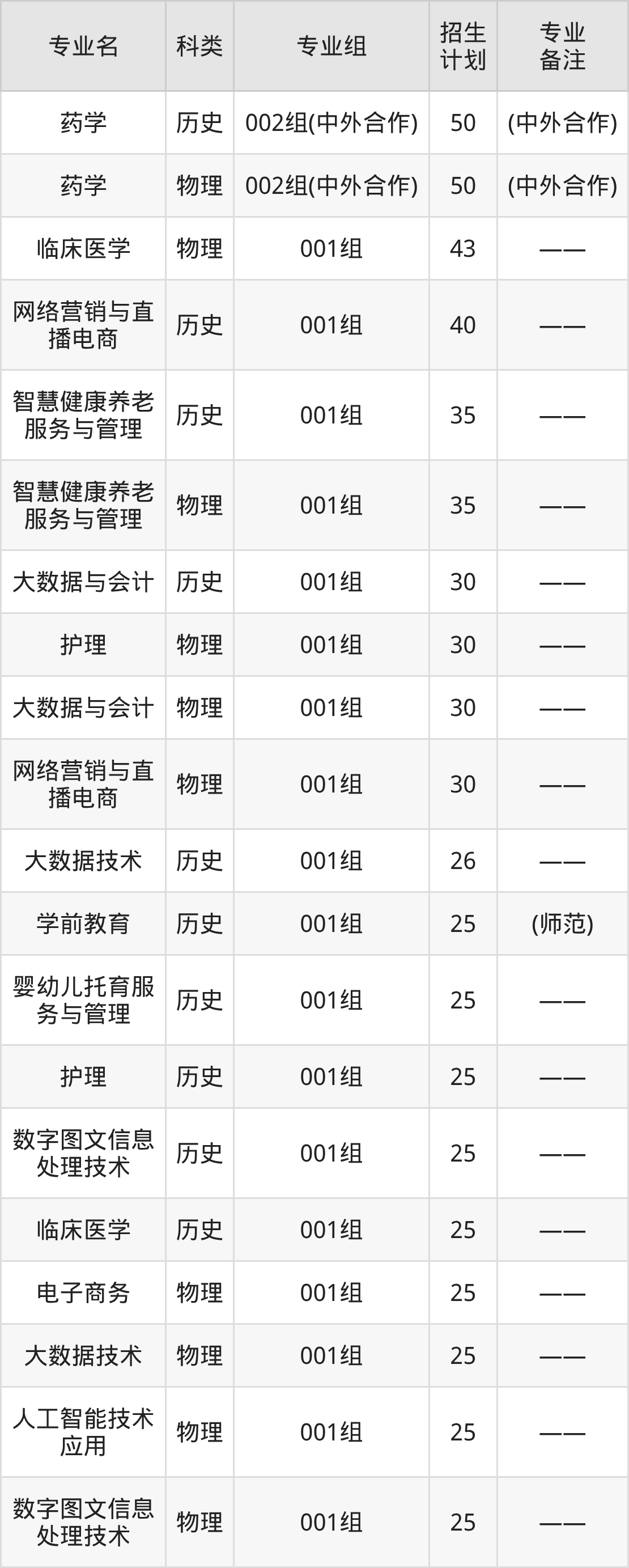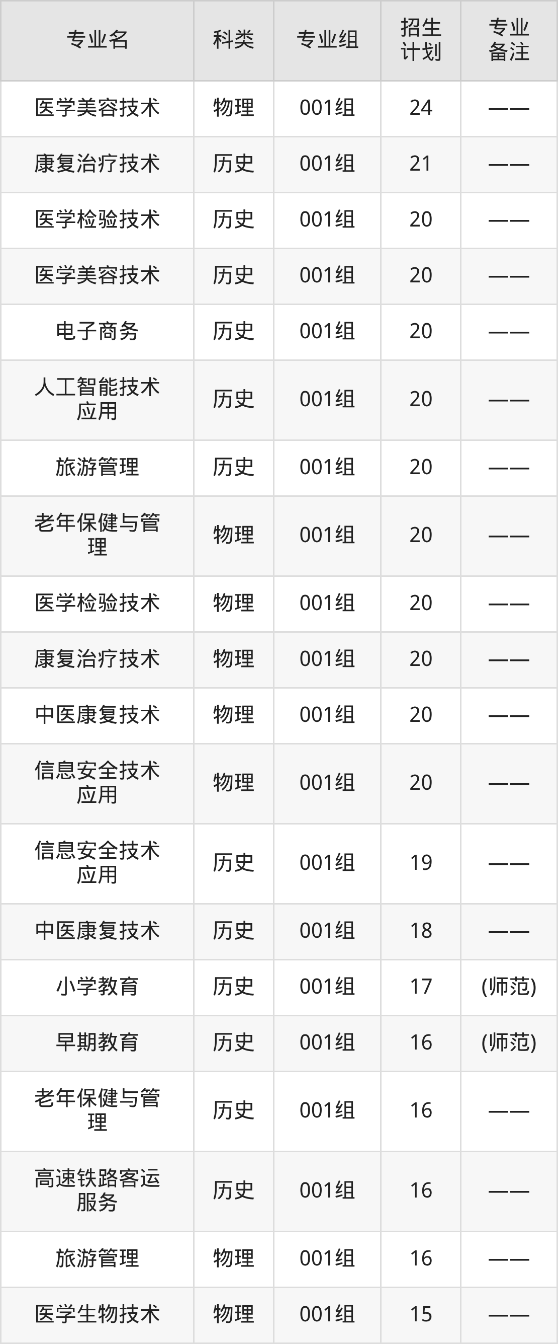 值得注意的是,滁州城市职业学院在专科批招生,招生类型为历史类、物理类。篇幅有限,这里仅附上滁州城市职业学院在安徽省内招生计划详情: