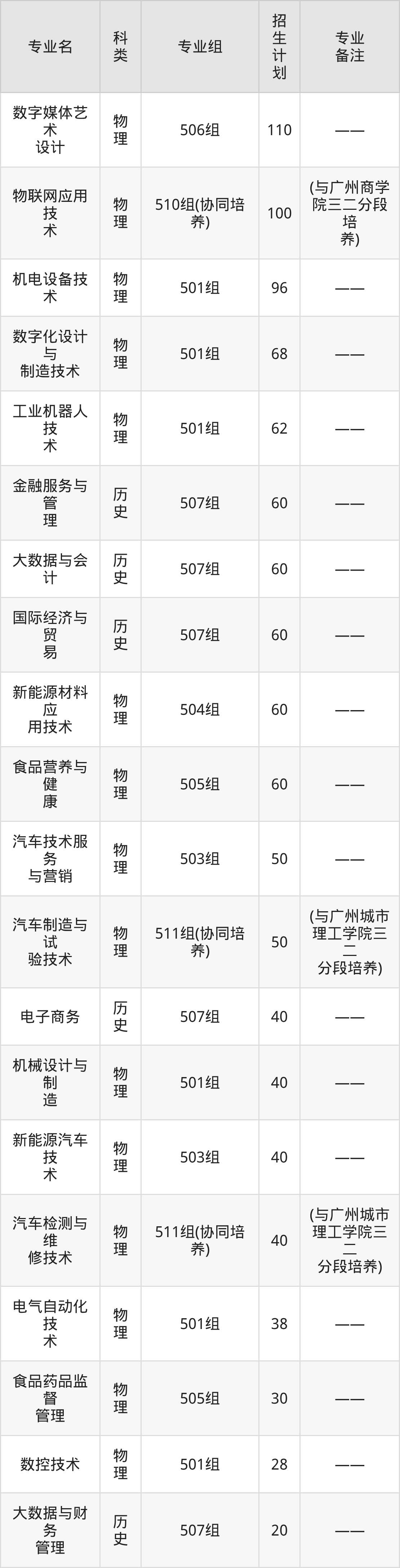 值得注意的是,佛山职业技术学院在专科批招生,招生类型为物理类、历史类。