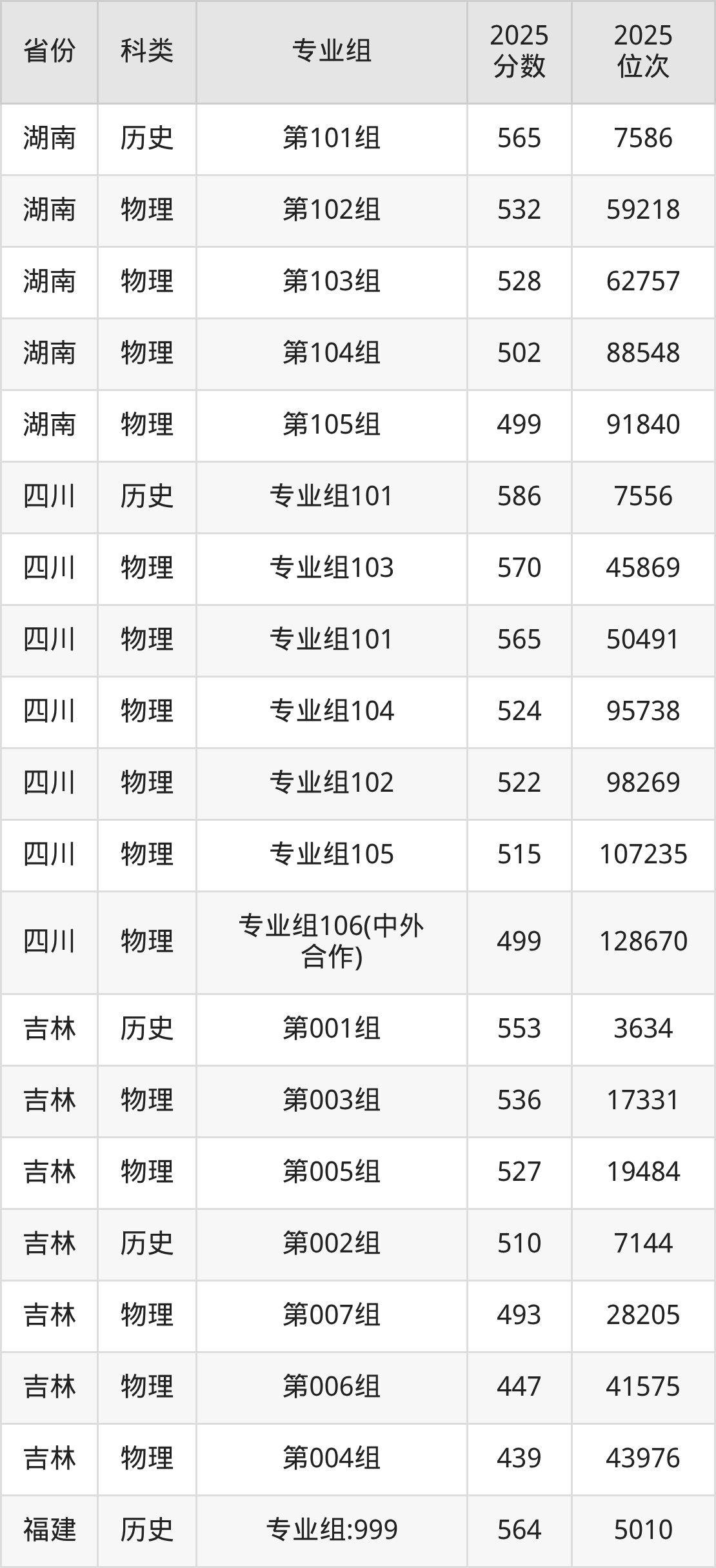 1、吉林:最低分439分,对应最低分专业组为物理类第004组,位次43976名;
