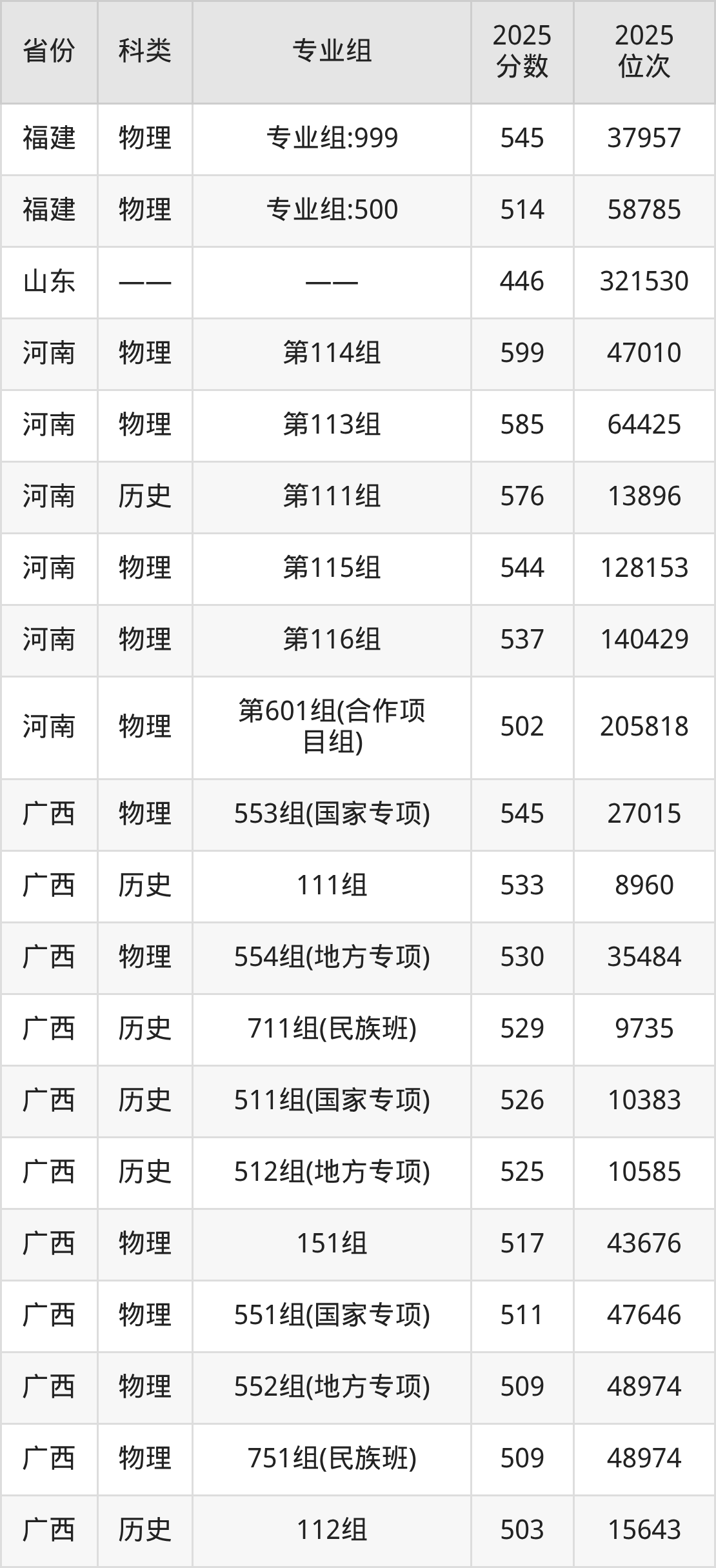除上述省份外,广西中医药大学2025各省录取最低分详情见下: