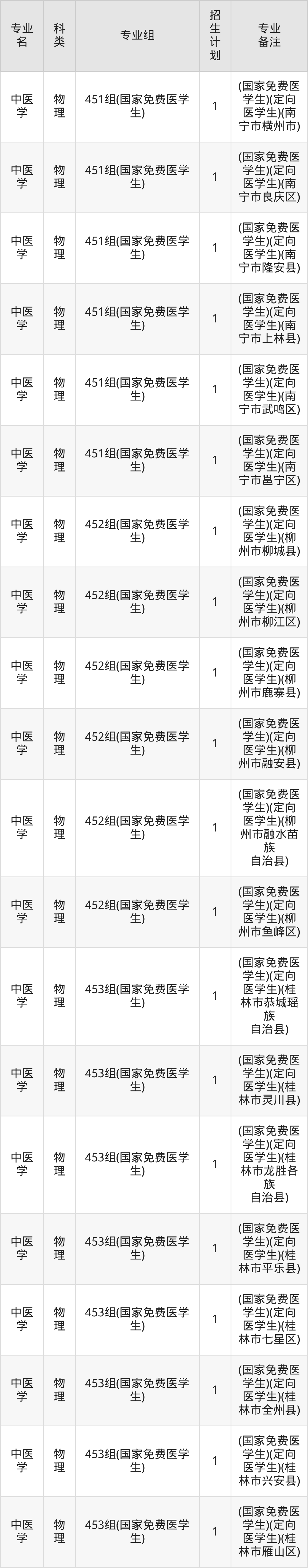 广西中医药大学2025全国各省招生计划详情见下: