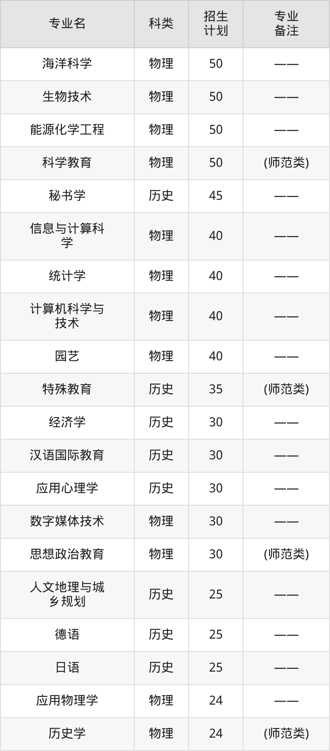 第三名:山东(28人),招生人数最多的专业是地理科学(7人、普通类,(师范类))。