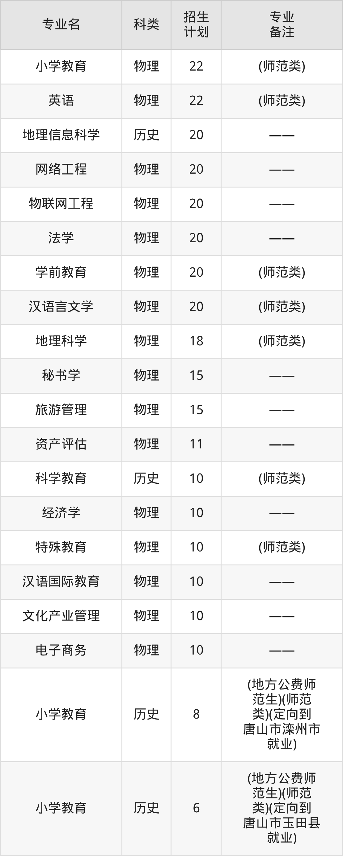 值得注意的是,唐山师范学院在本科批、本科提前批招生,招生类型为物理类、历史类。篇幅有限,这里仅附上唐山师范学院在河北省内招生计划详情: