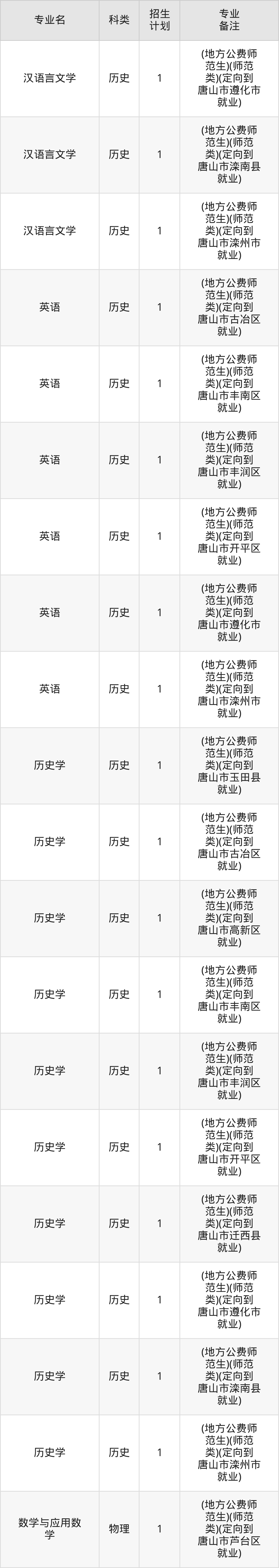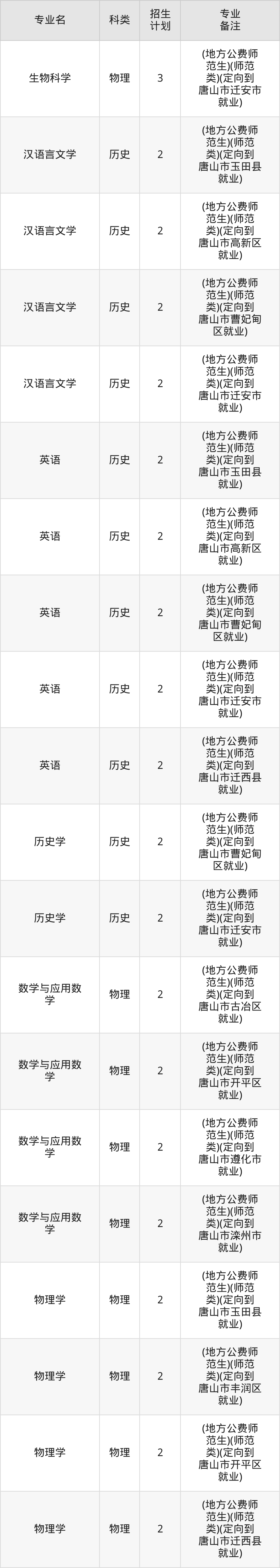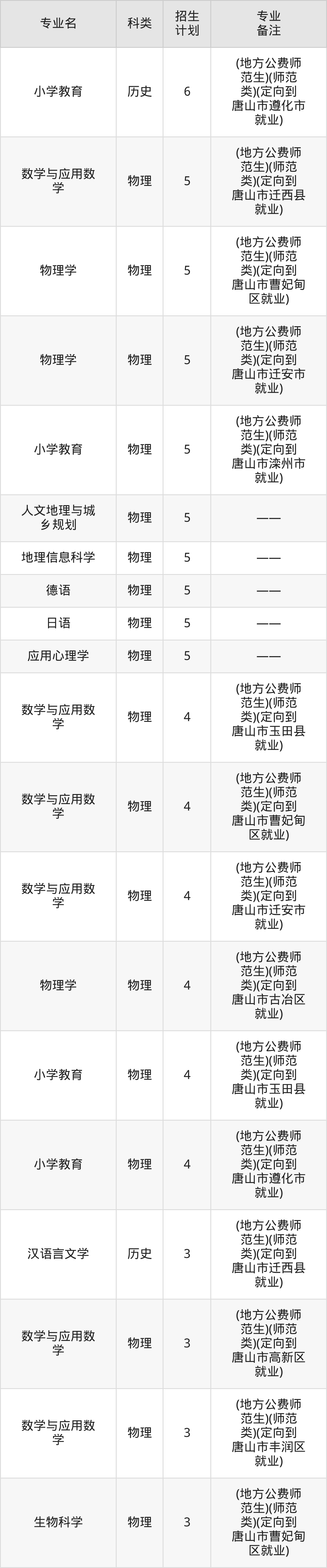 一、唐山师范学院2026全国招生计划表