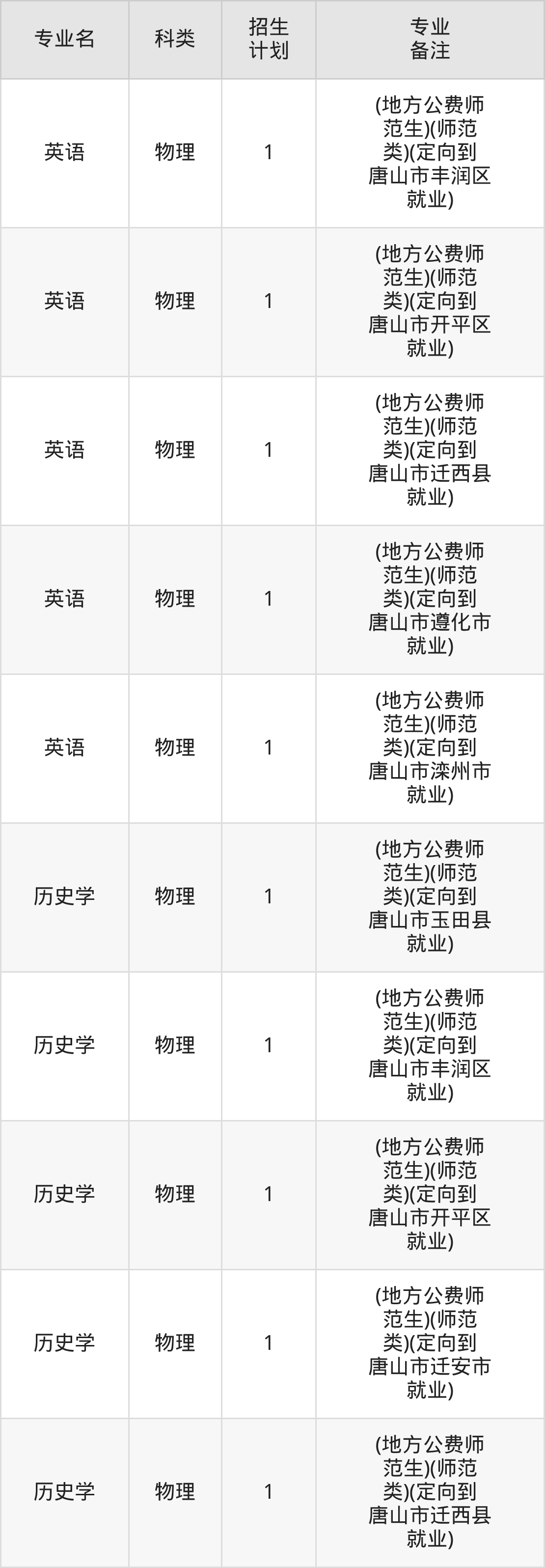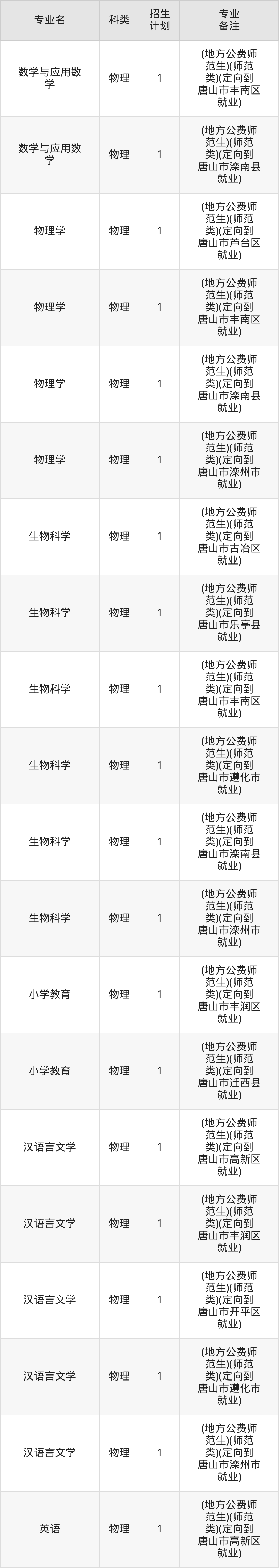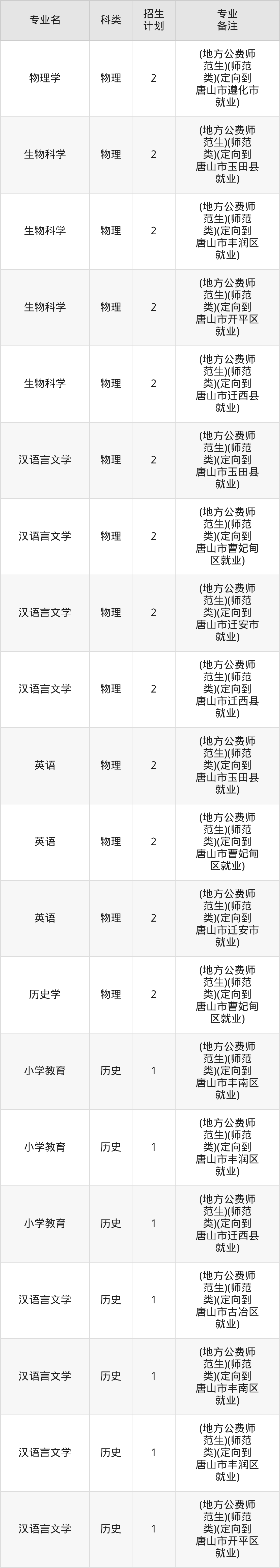 一、唐山师范学院2026全国招生计划表