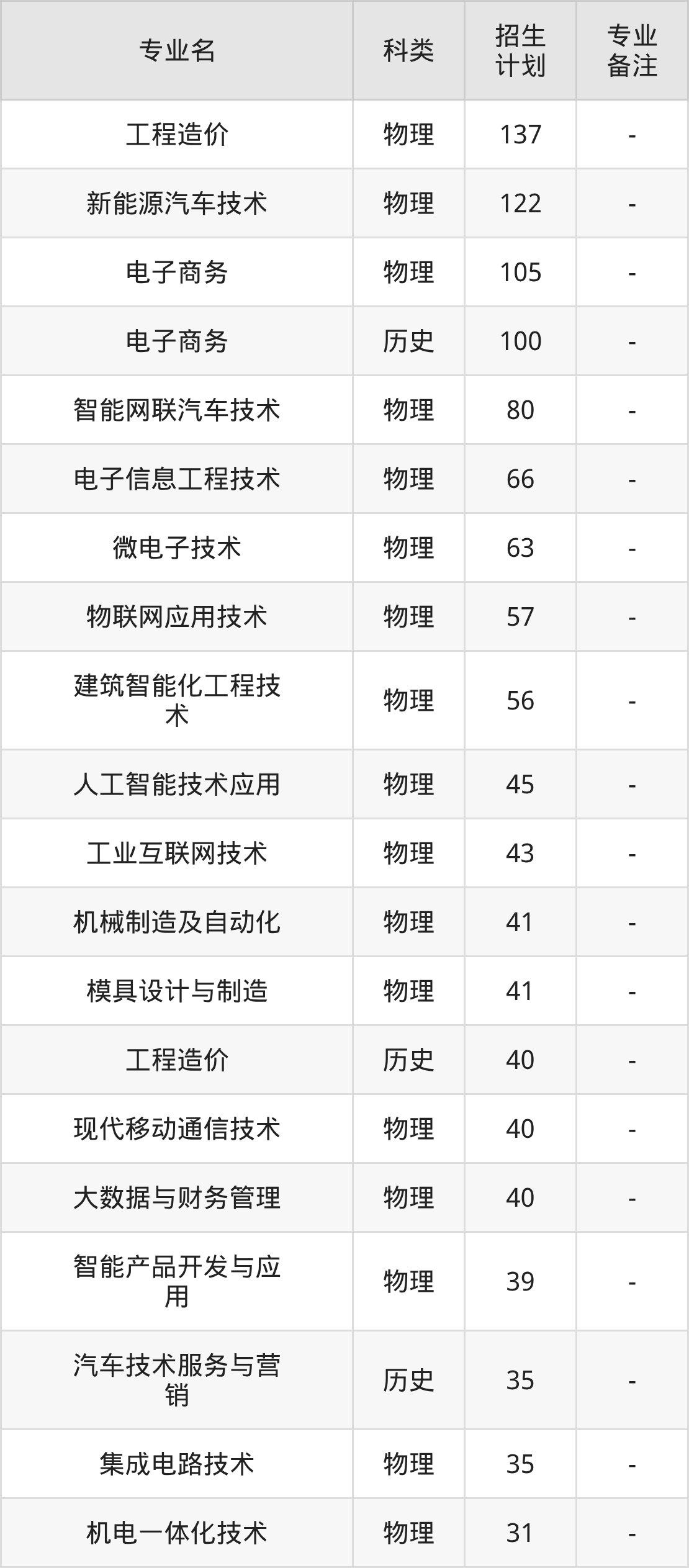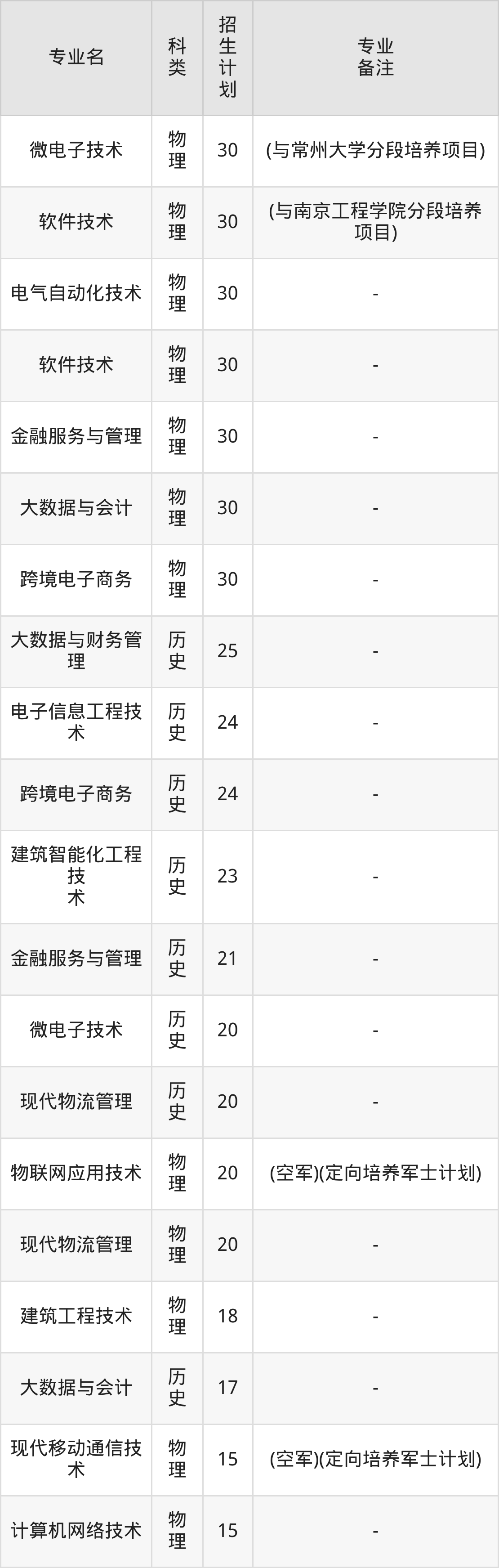 值得注意的是,江苏信息职业技术学院在专科批招生,招生类型为物理类、历史类。篇幅有限,这里仅附上江苏信息职业技术学院在江苏省内招生计划详情: