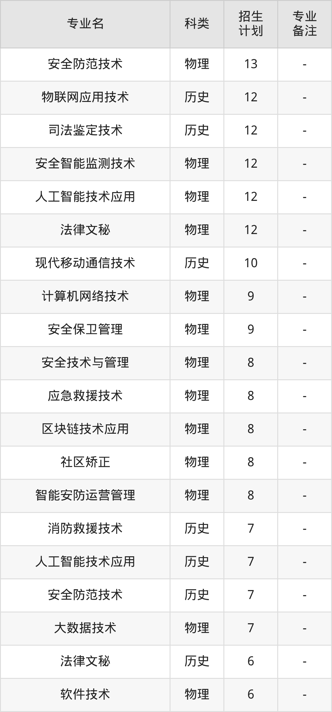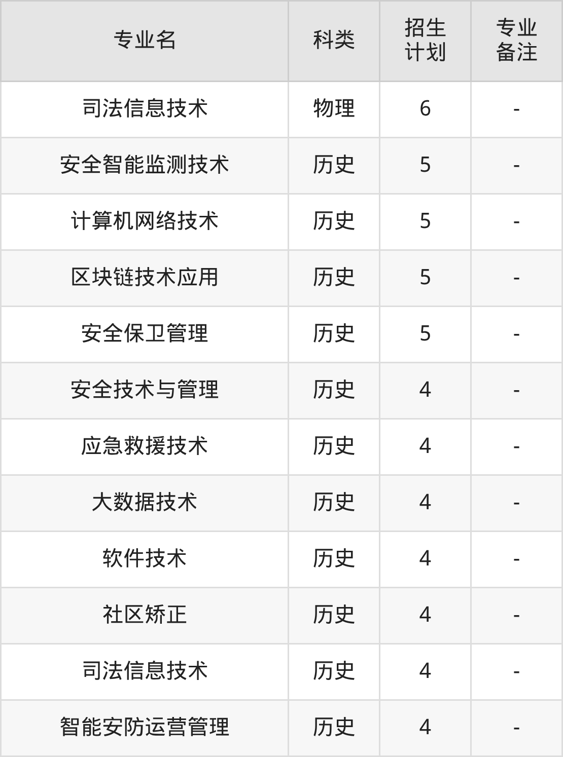 第三名:甘肃(120人),招生人数最多的专业是司法警务(7人、物理类)。