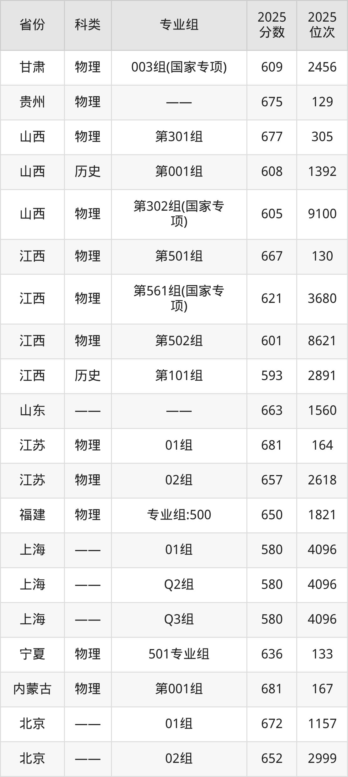 5、江西:最低分593分,对应最低分专业组为历史类第101组,位次2891名;