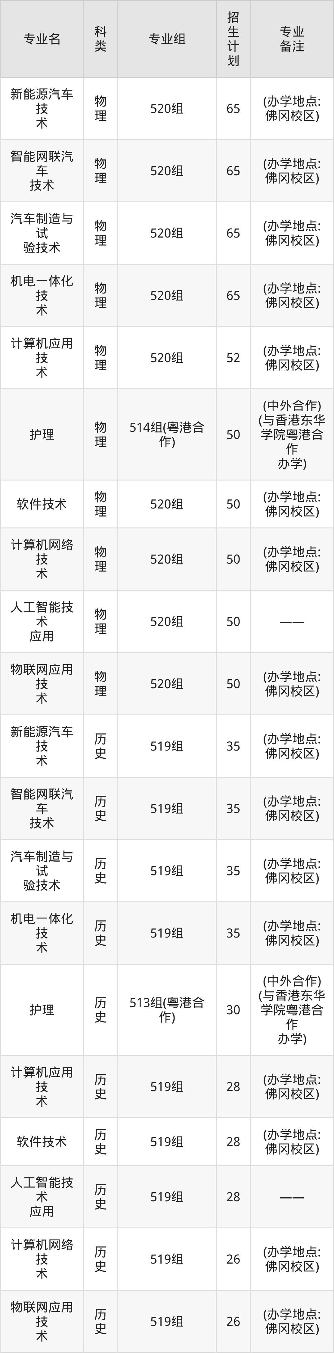 第一名:广东(2446人),招生人数最多的专业是新能源汽车技术(65人、物理类,(办学地点:佛冈校区))。