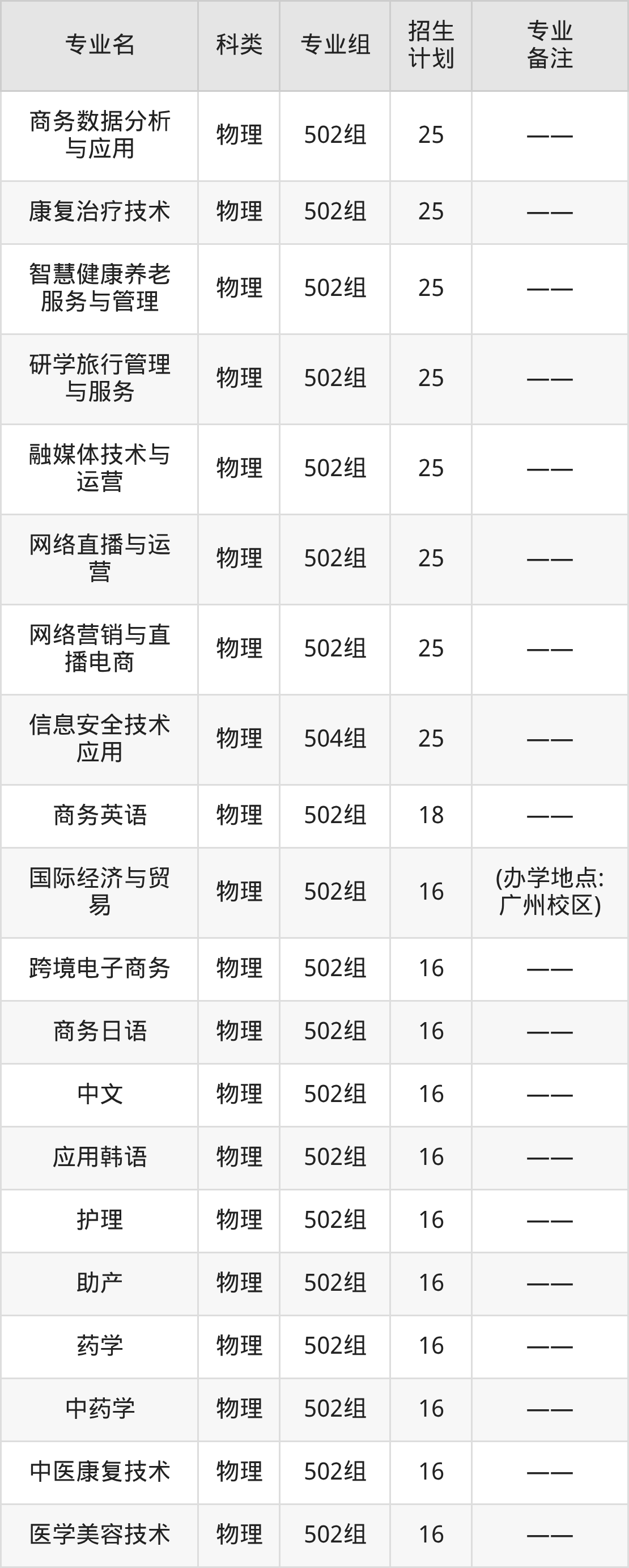 广州涉外经济职业技术学院2025全国各省招生计划详情见下: