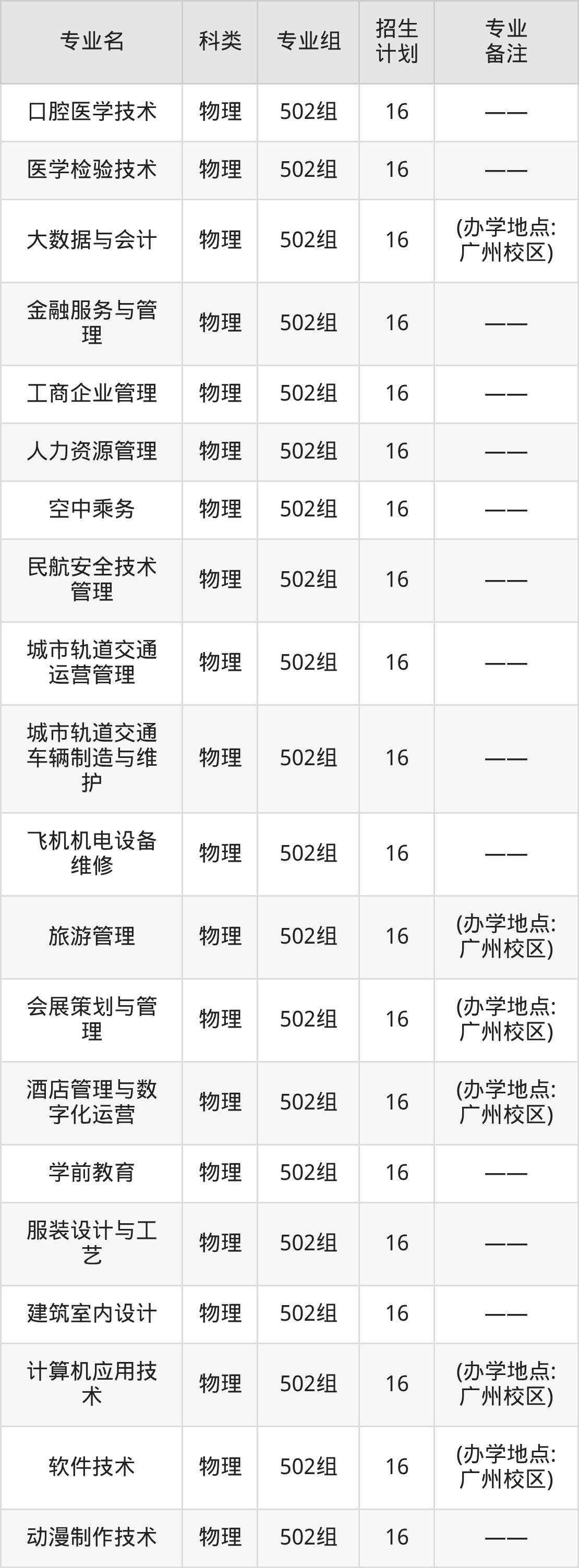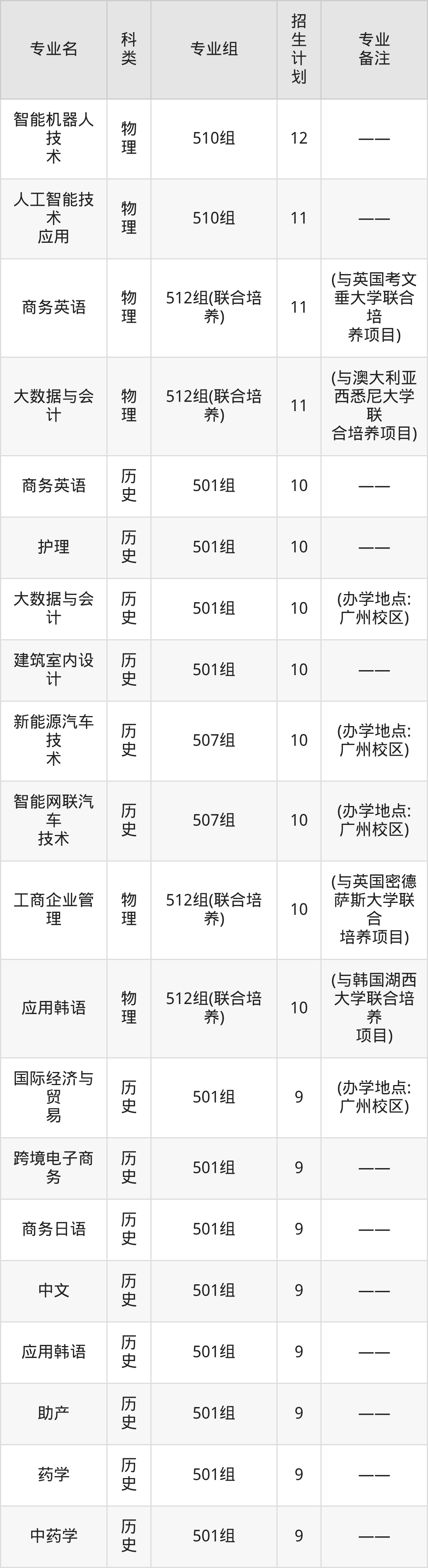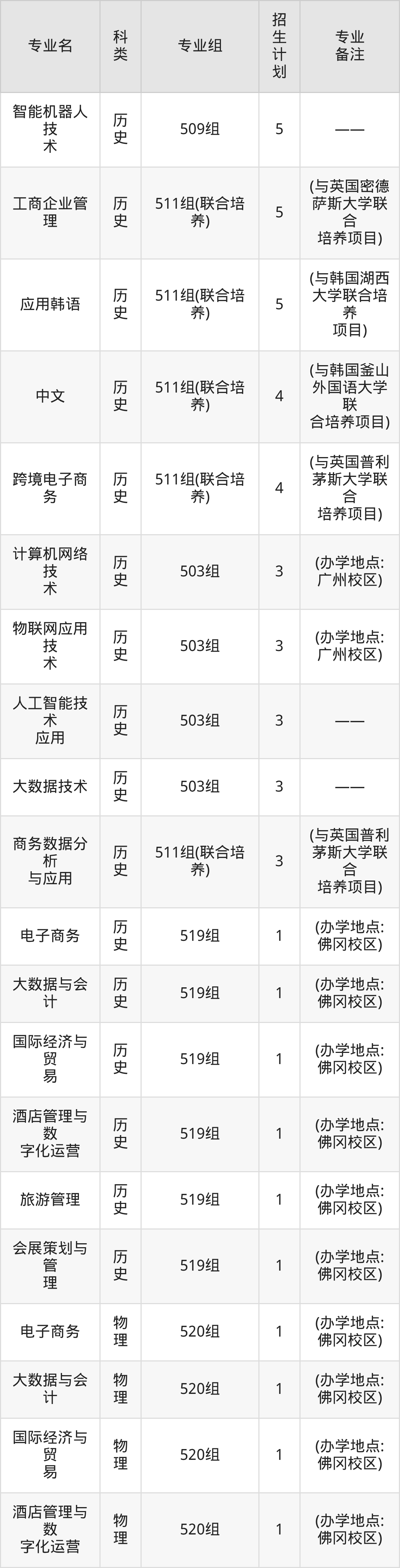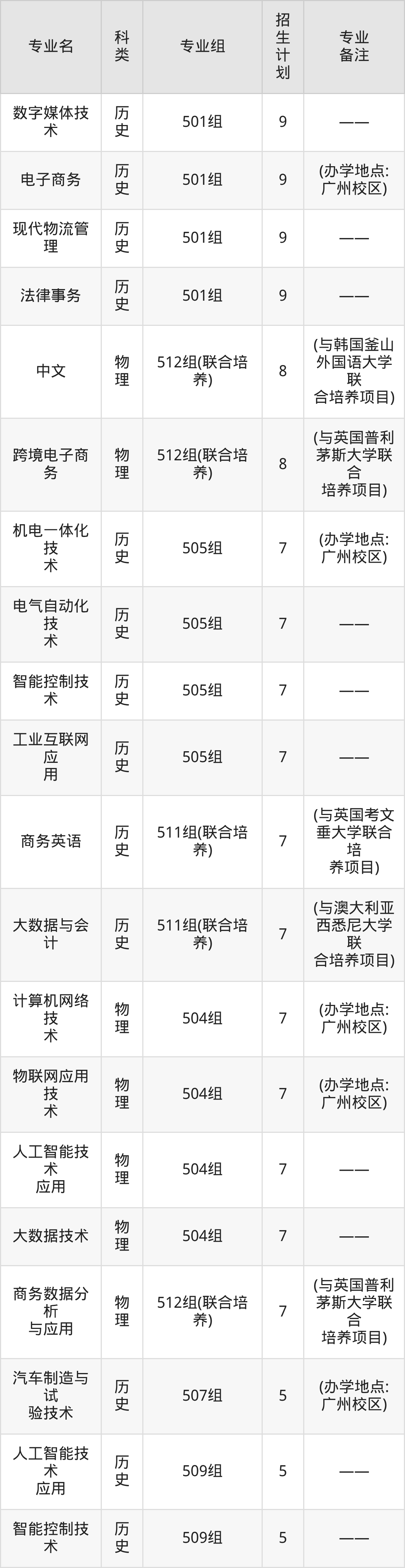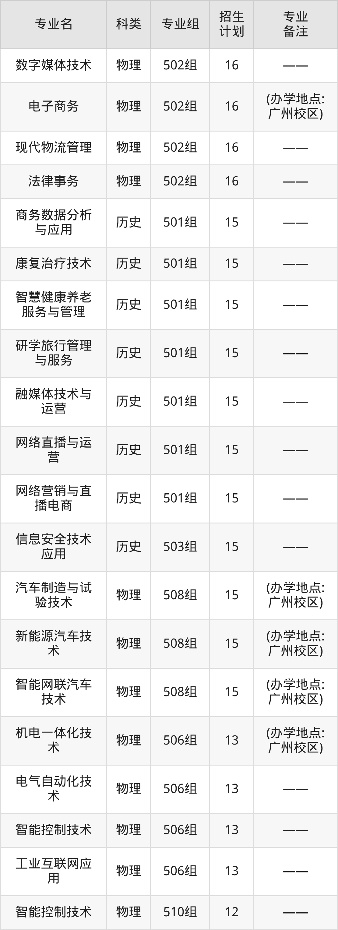 值得注意的是,广州涉外经济职业技术学院在专科批招生,招生类型为物理类、历史类。篇幅有限,这里仅附上广州涉外经济职业技术学院在广东省内招生计划详情: