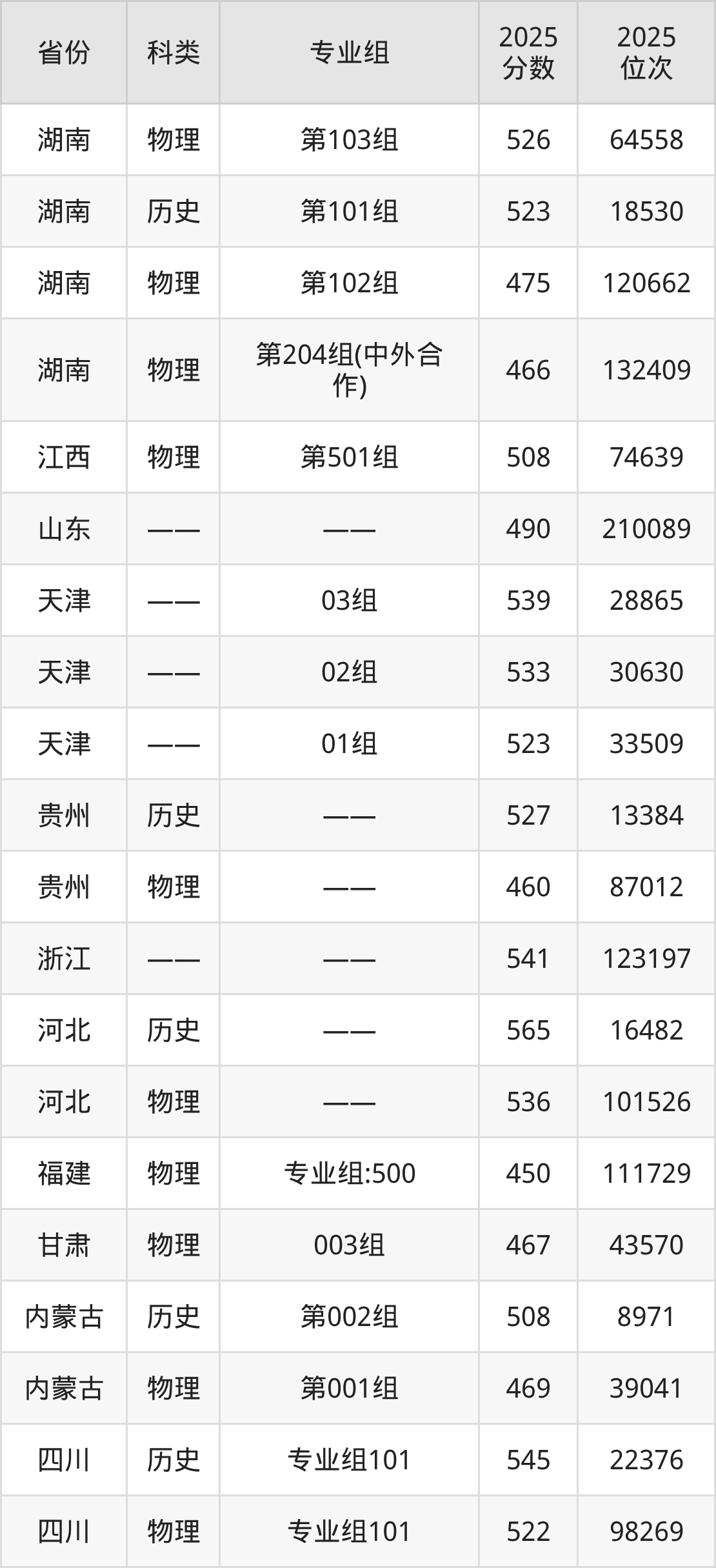 除上述省份外,山东农业大学2025各省录取最低分详情见下: