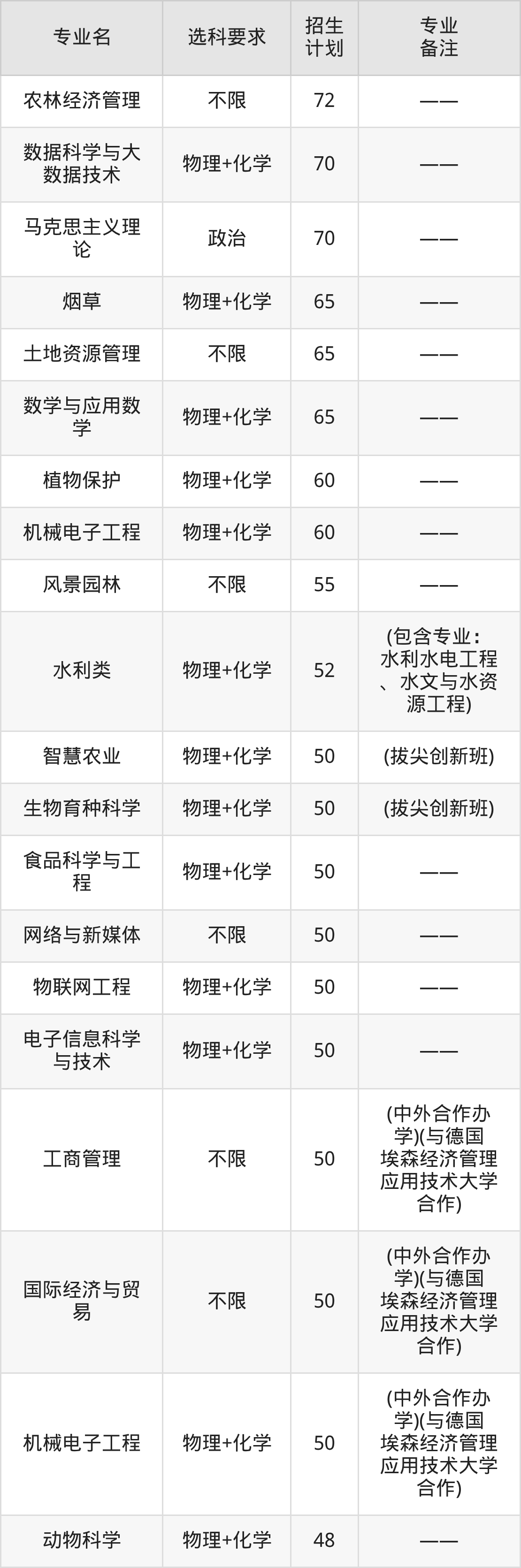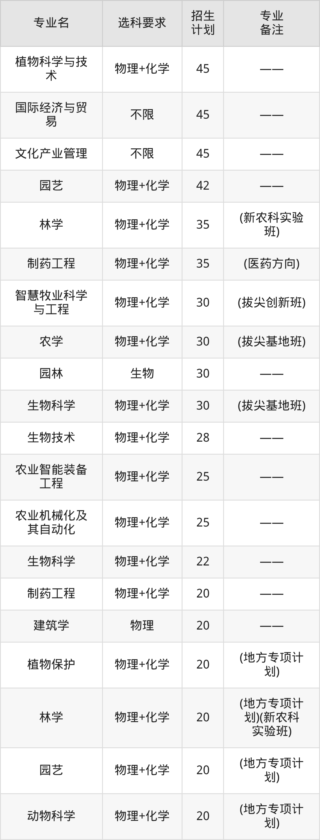 山东农业大学2026年招生计划表预计在6月份左右公布,本文目前先整理了2025年招生信息方便大家进行参考: