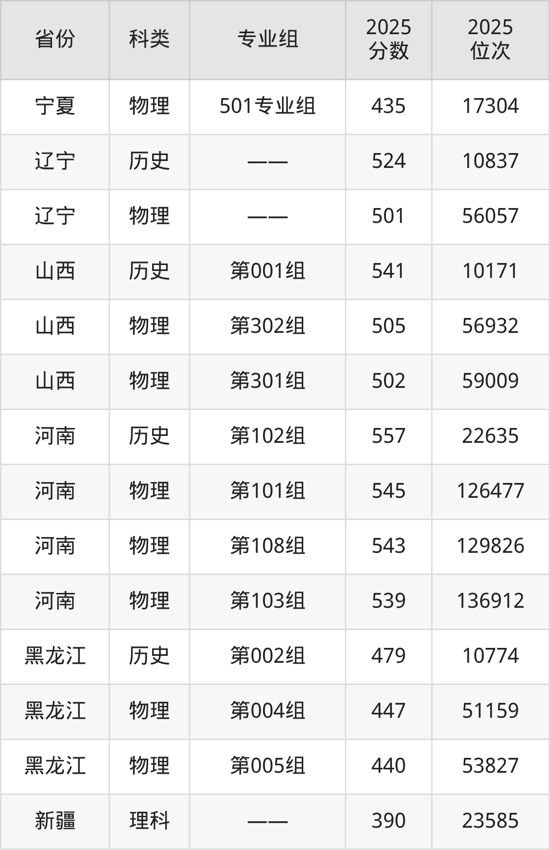 2、宁夏:最低分435分,对应最低分专业组为物理类501专业组,位次17304名;