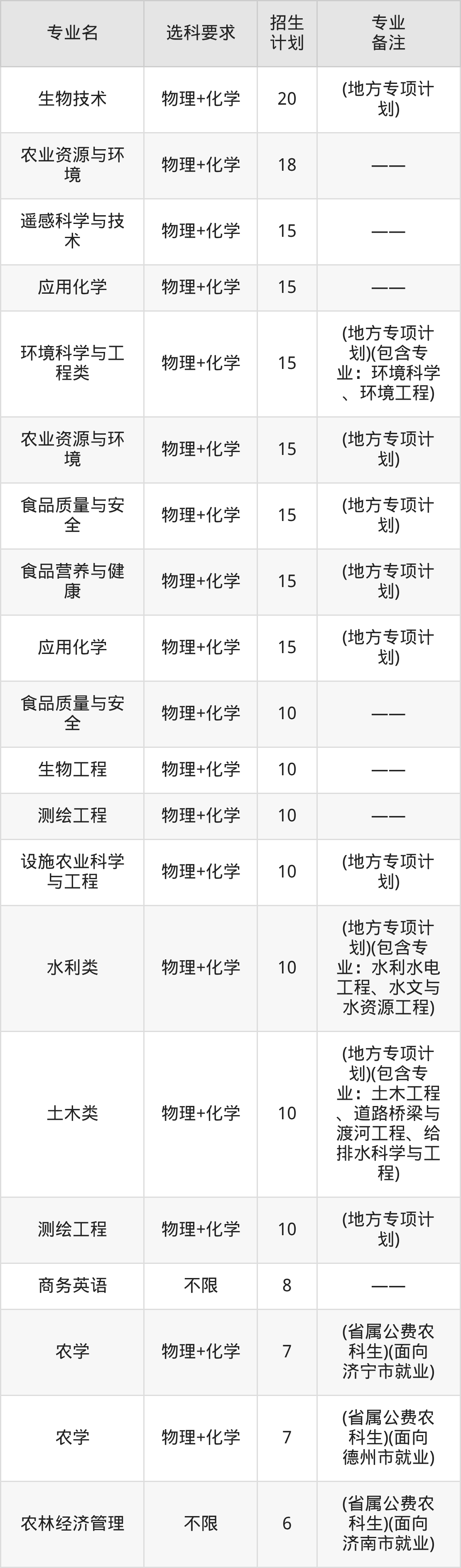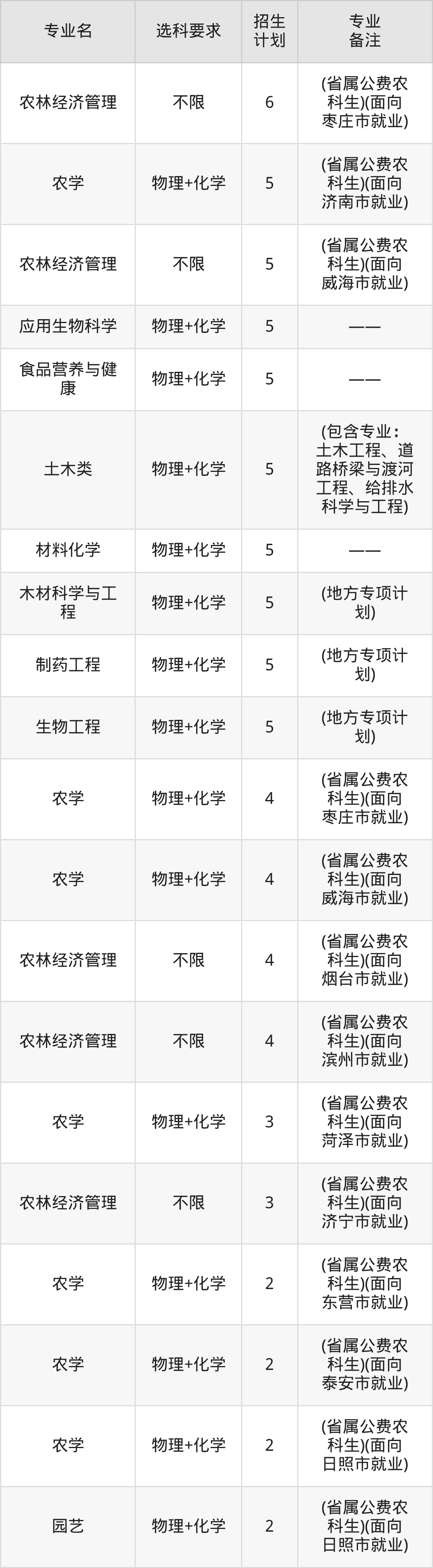 值得注意的是,山东农业大学在本科批、本科提前批招生,招生类型为普通类。篇幅有限,这里仅附上山东农业大学在山东省内招生计划详情: