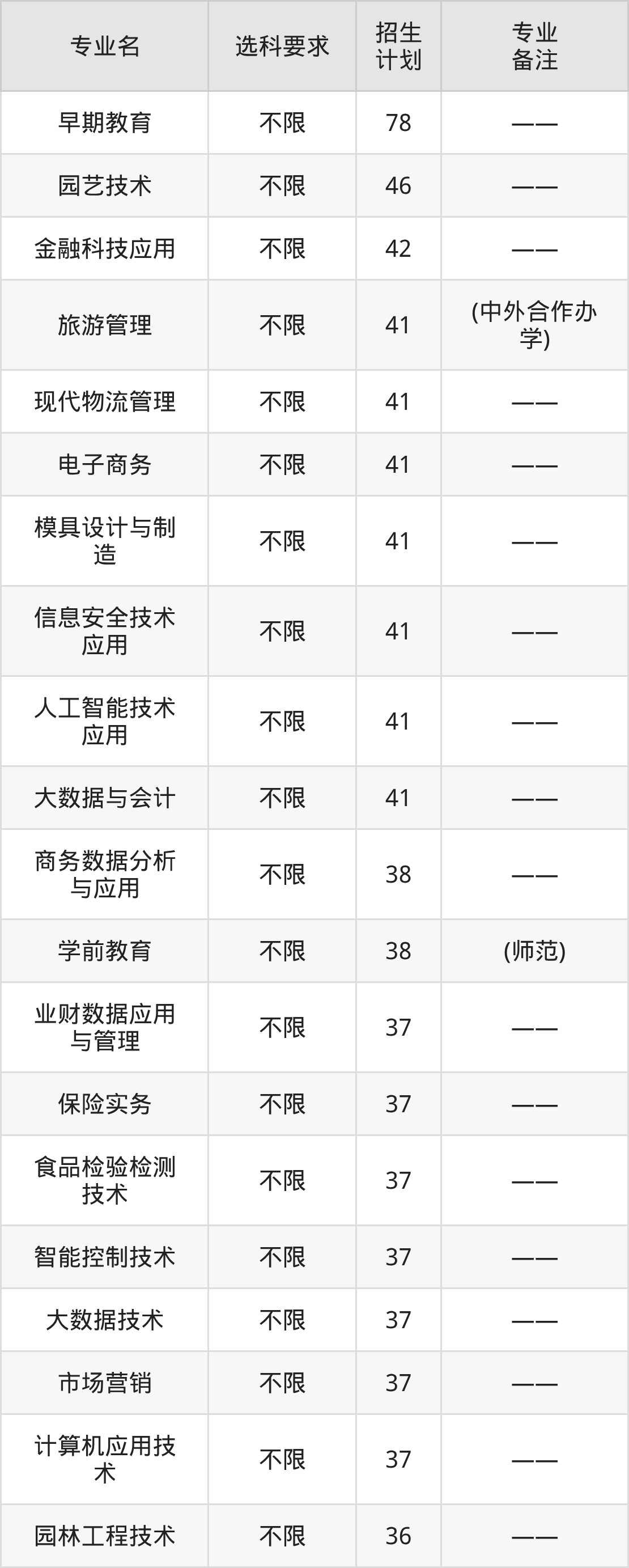 值得注意的是,台州科技职业学院在专科批招生,招生类型为普通类。篇幅有限,这里仅附上台州科技职业学院在浙江省内招生计划详情: