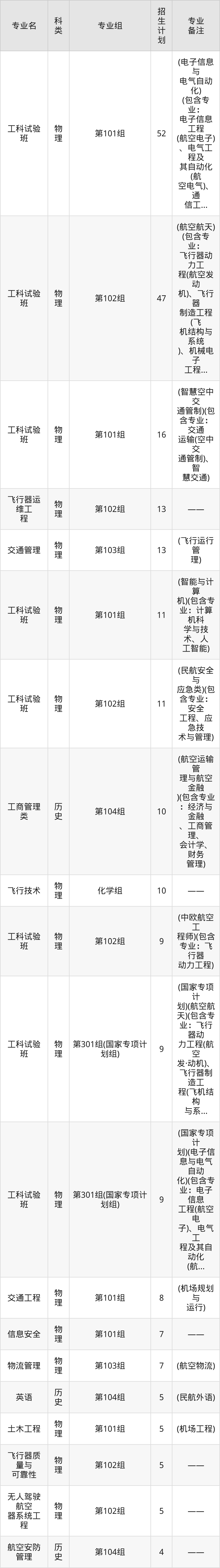 值得注意的是,中国民航大学在本科批、本科提前批招生,招生类型为物理类、历史类。篇幅有限,这里仅附上中国民航大学在河南省内招生计划详情: