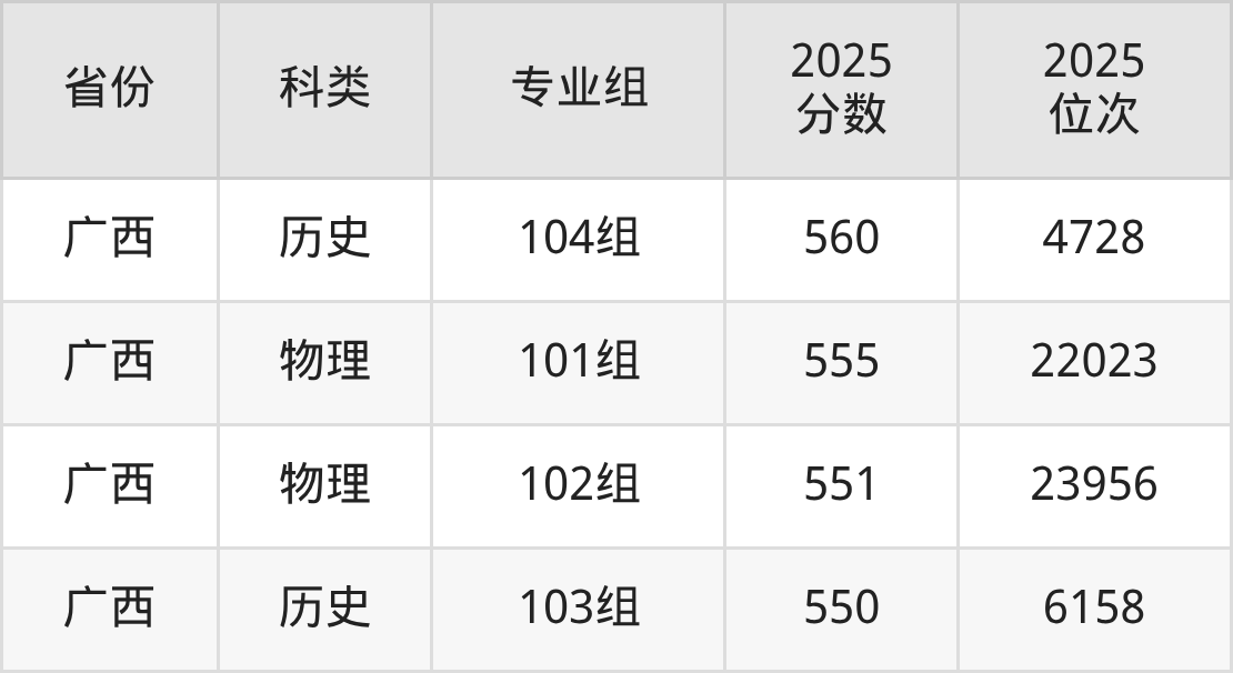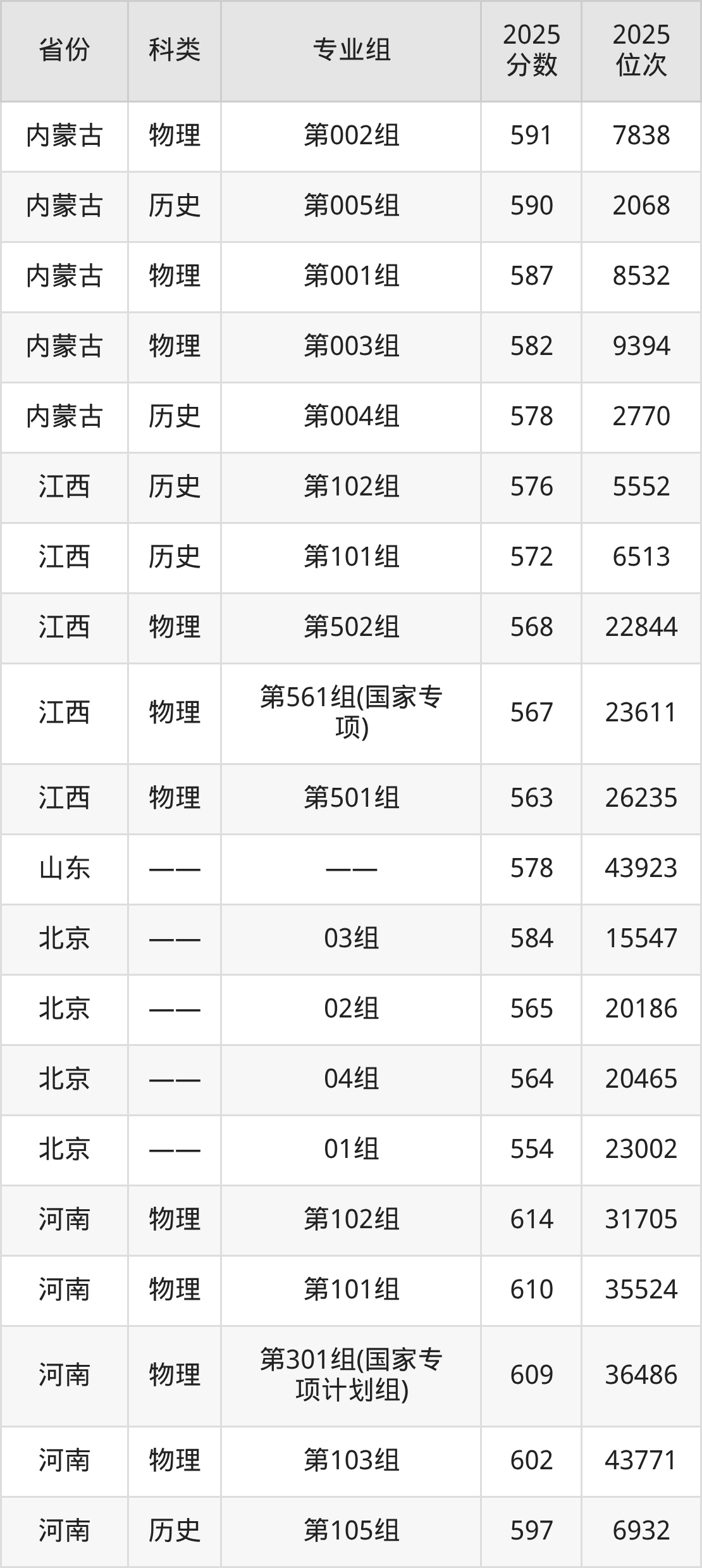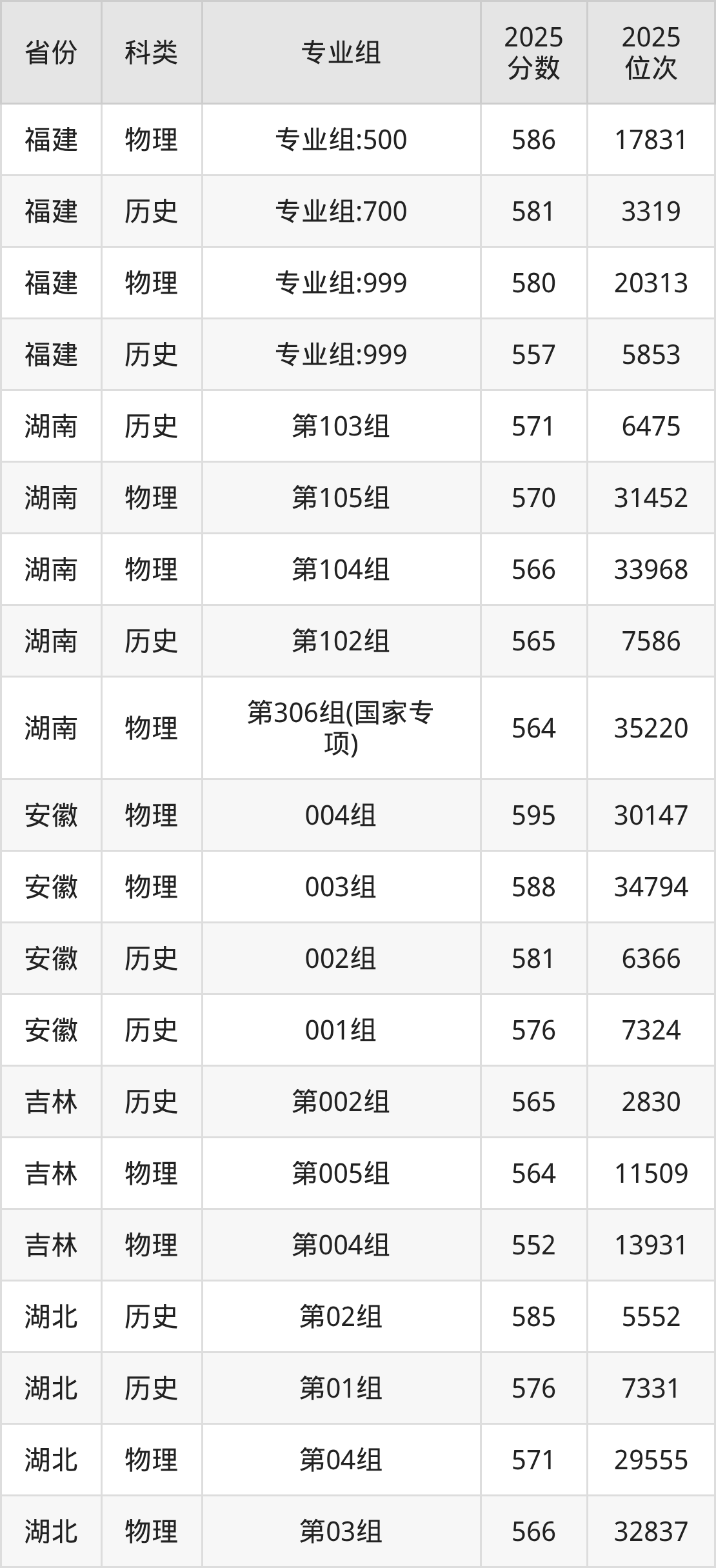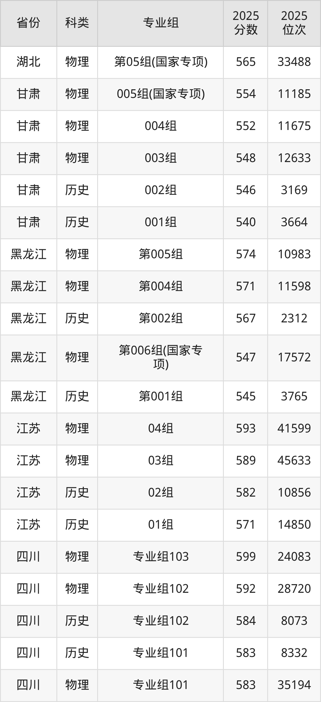 4、甘肃:最低分540分,对应最低分专业组为历史类001组,位次3664名;
