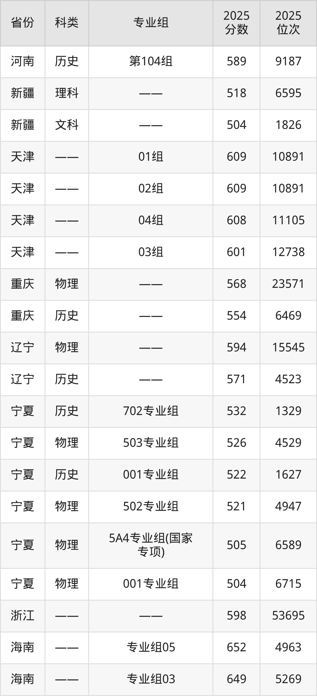 除上述省份外,中国民航大学2025各省录取最低分详情见下: