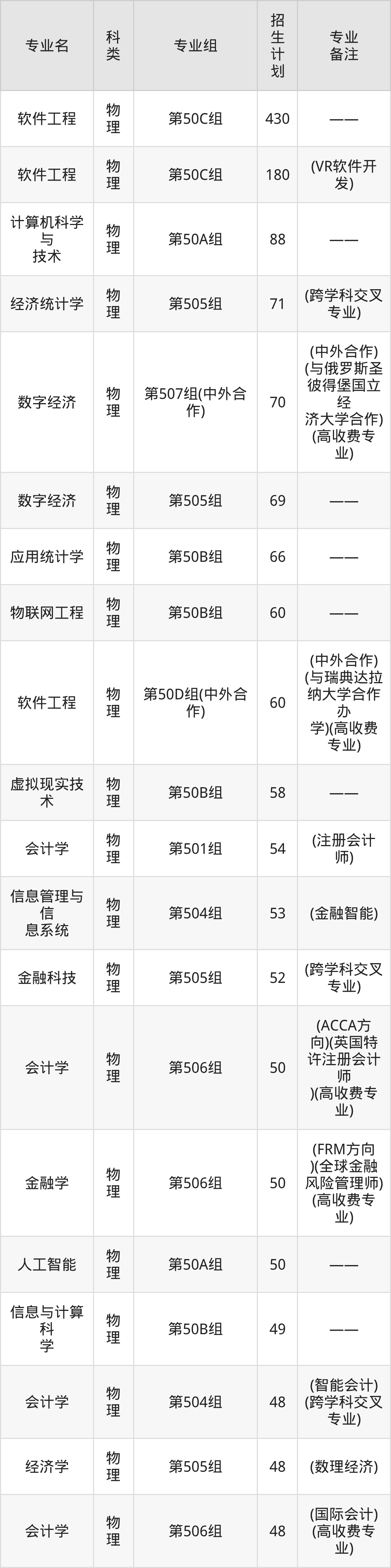 第二名:广东(237人),招生人数最多的专业是软件工程(15人、物理类)。