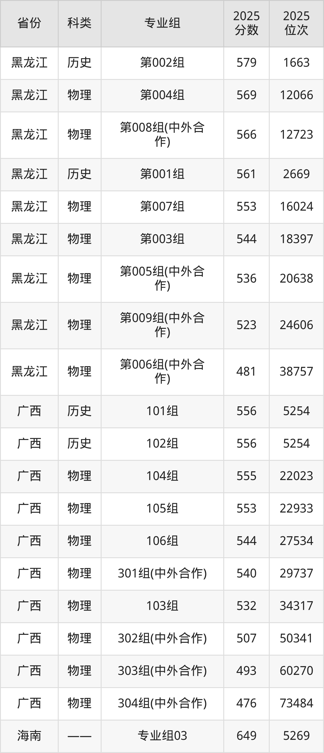 5、黑龙江:最低分481分,对应最低分专业组为物理类第006组(中外合作),位次38757名;
