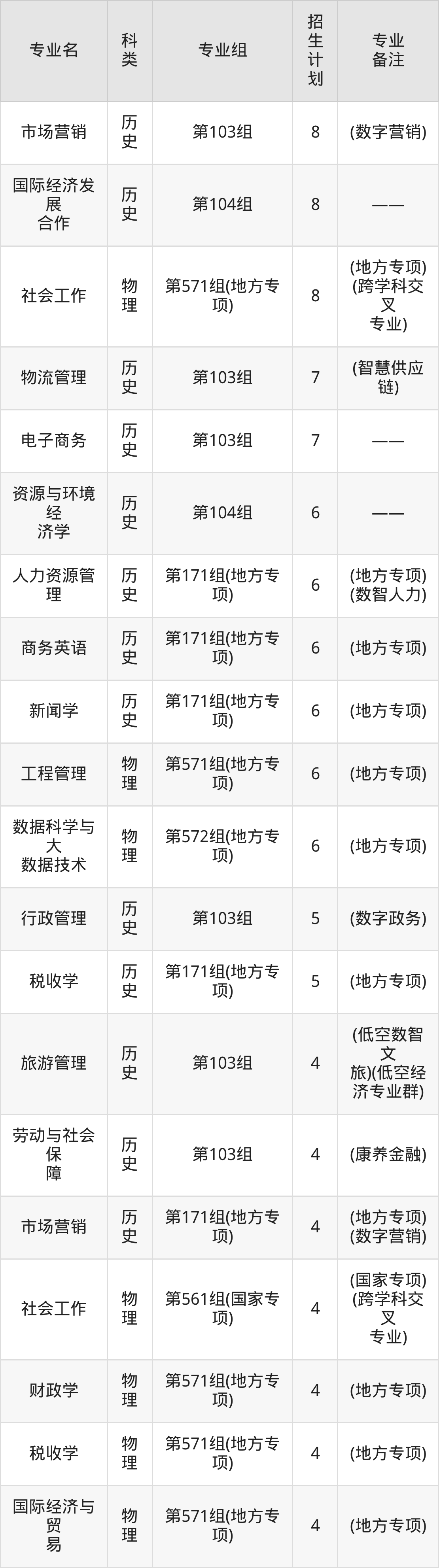 值得注意的是,江西财经大学在本科批招生,招生类型为物理类、历史类。篇幅有限,这里仅附上江西财经大学在江西省内招生计划详情: