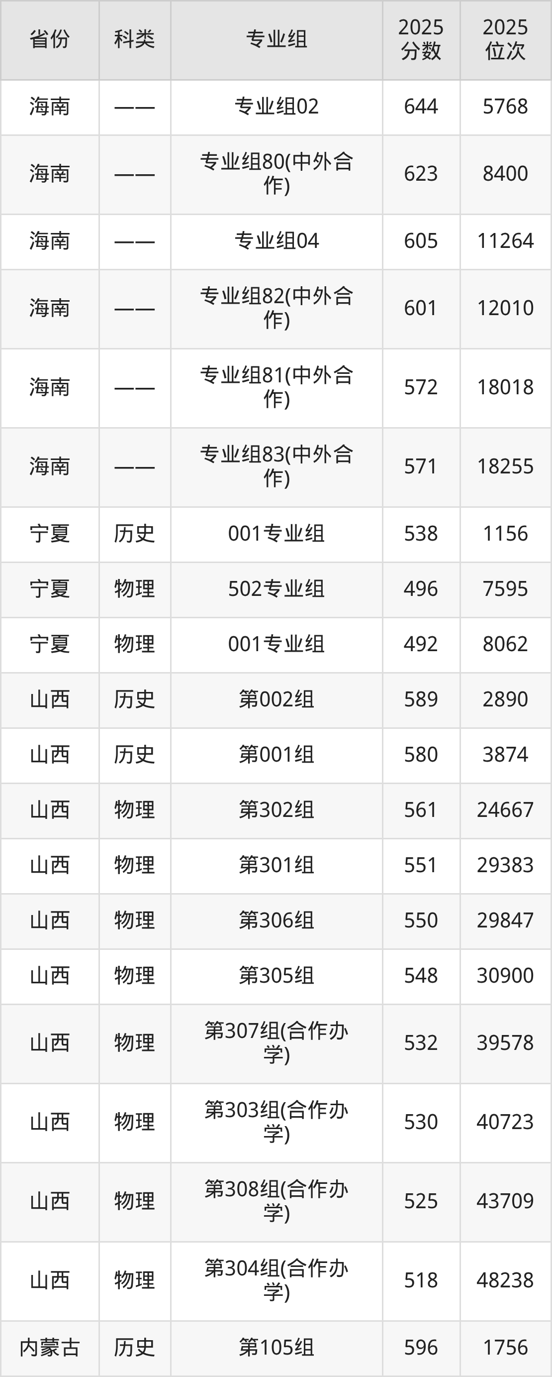 除上述省份外,江西财经大学2025各省录取最低分详情见下: