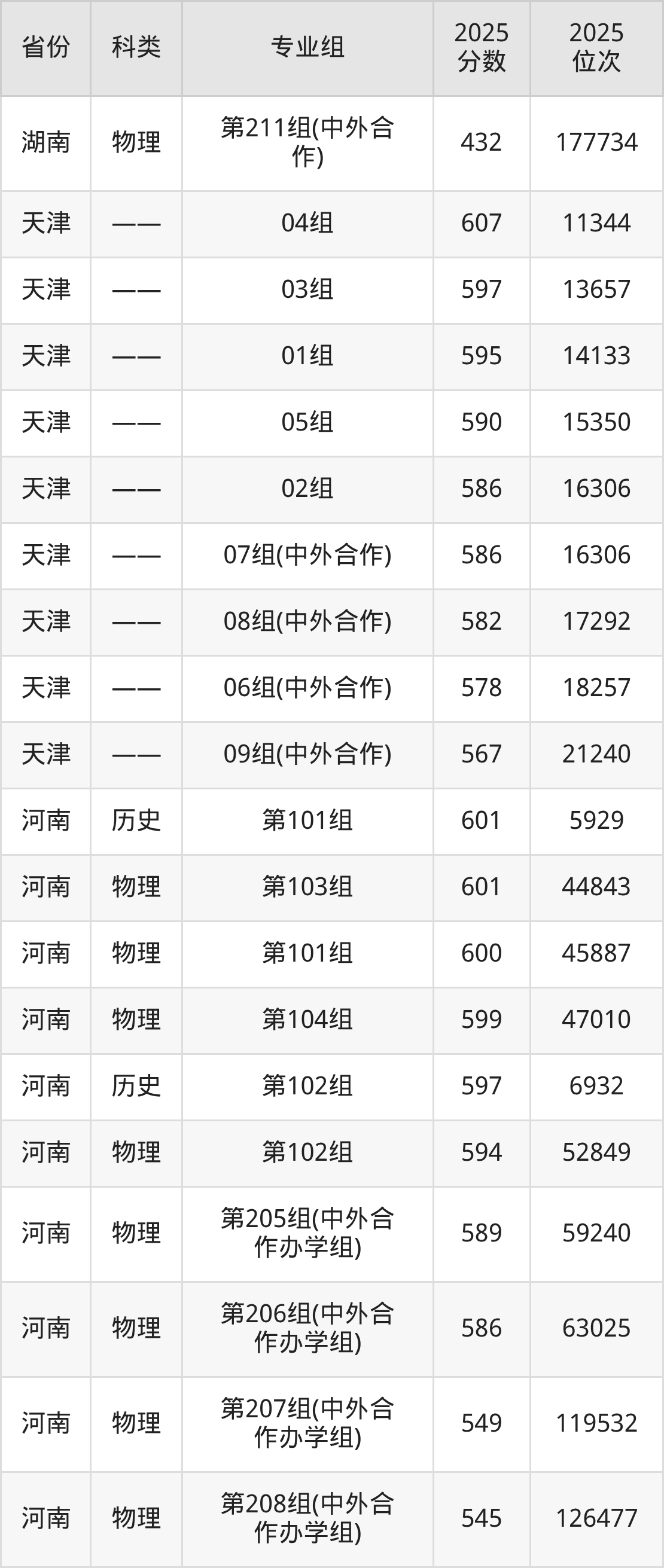 1、湖南:最低分432分,对应最低分专业组为物理类第211组(中外合作),位次177734名;