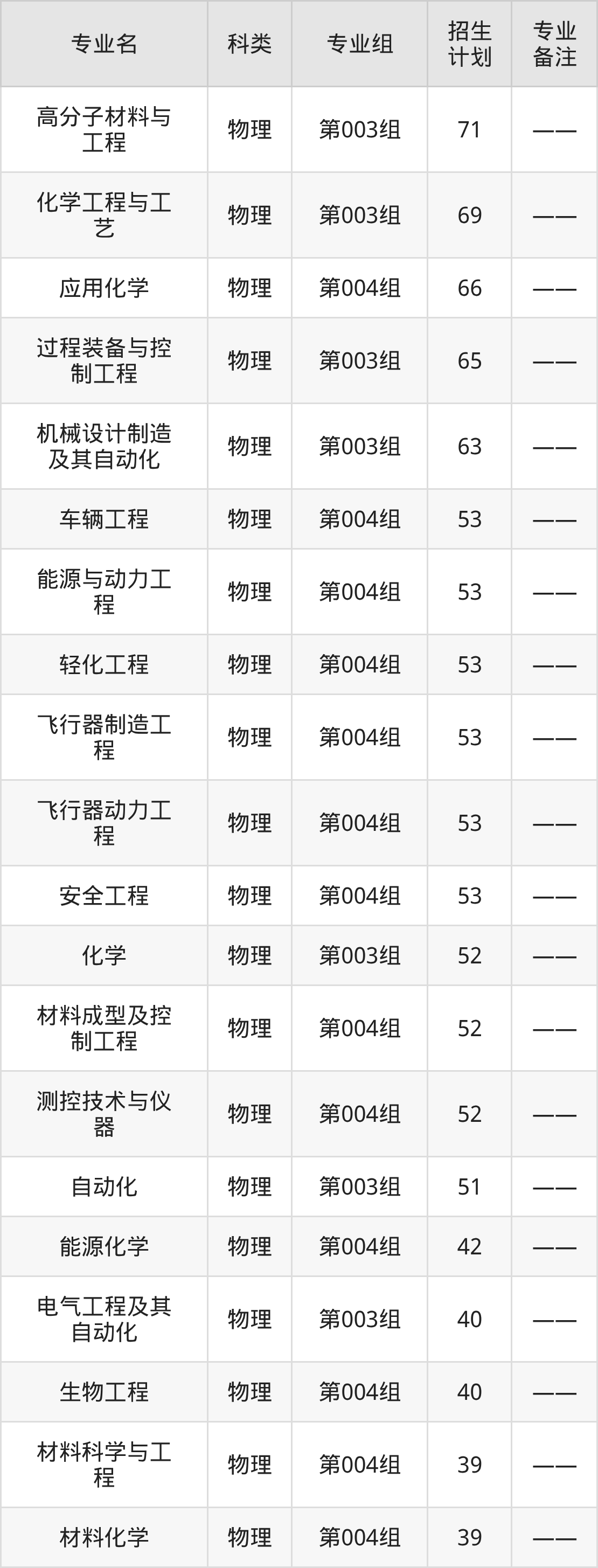 第一名:吉林(1963人),招生人数最多的专业是高分子材料与工程(71人、物理类)。