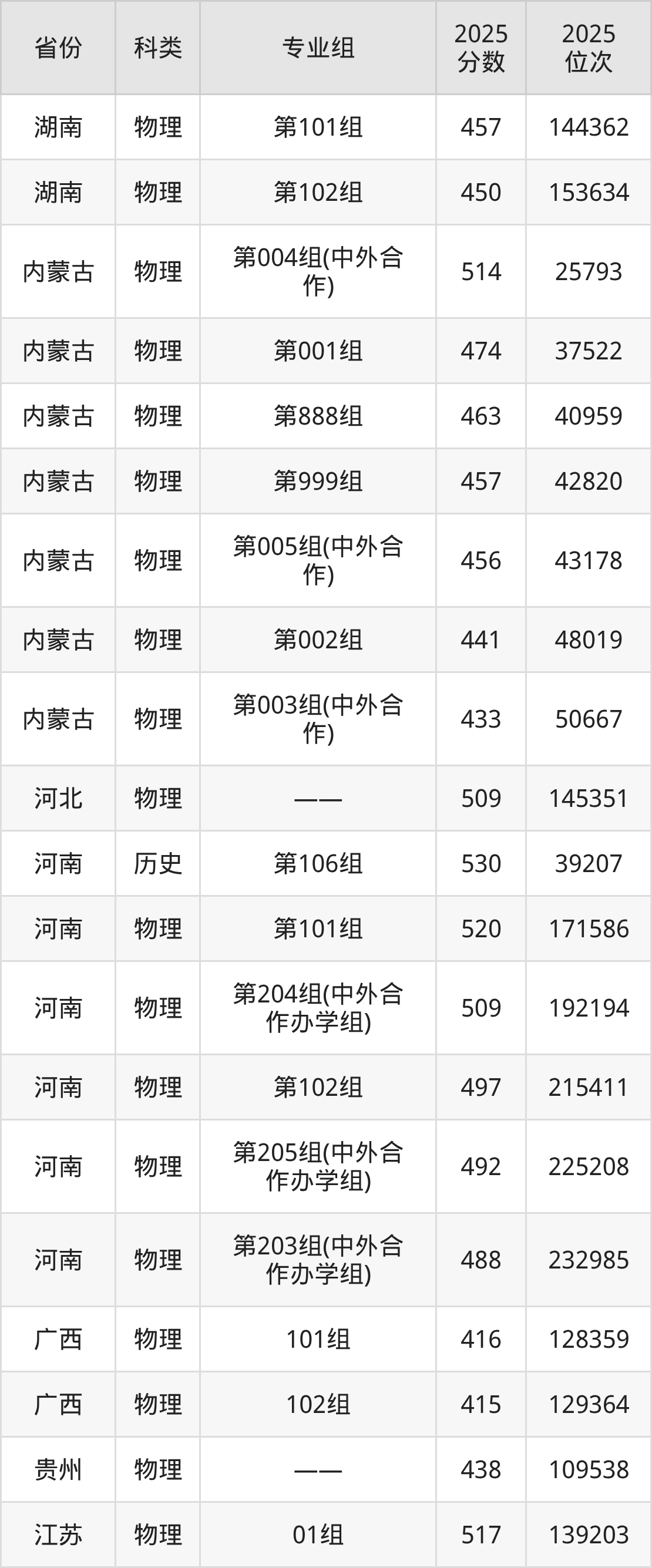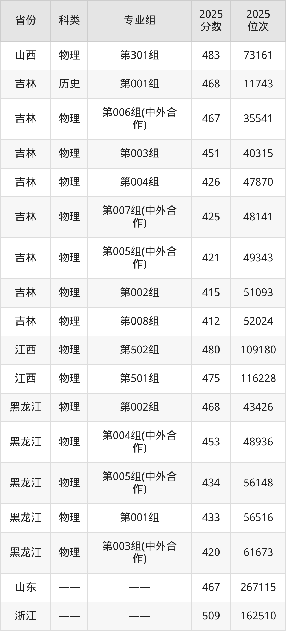 除上述省份外,吉林化工大学2025各省录取最低分详情见下: