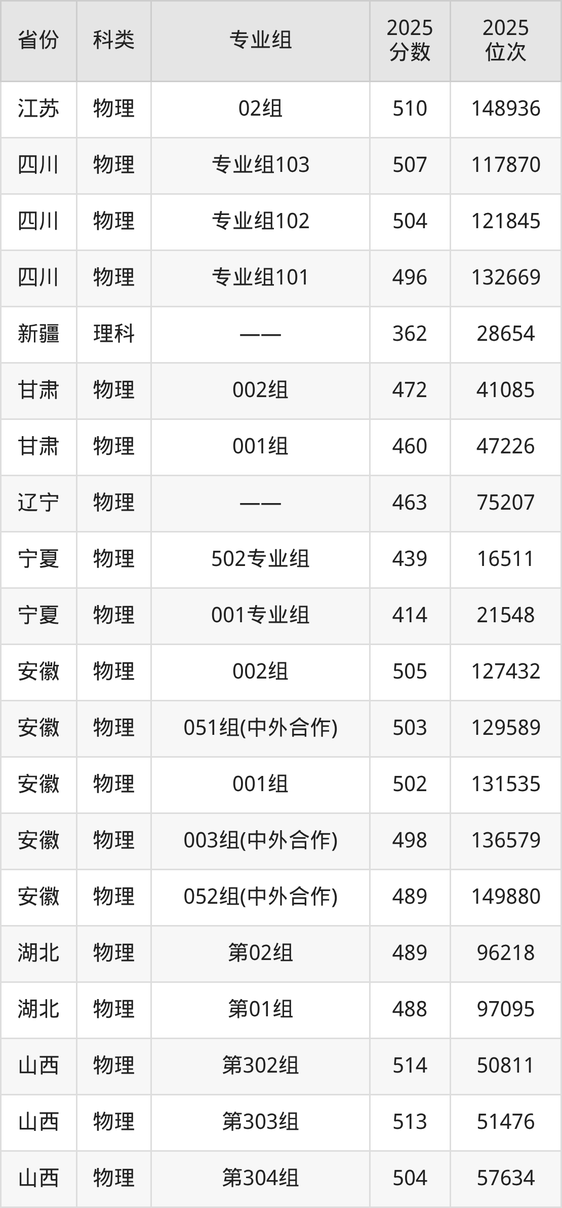 3、宁夏:最低分414分,对应最低分专业组为物理类001专业组,位次21548名;