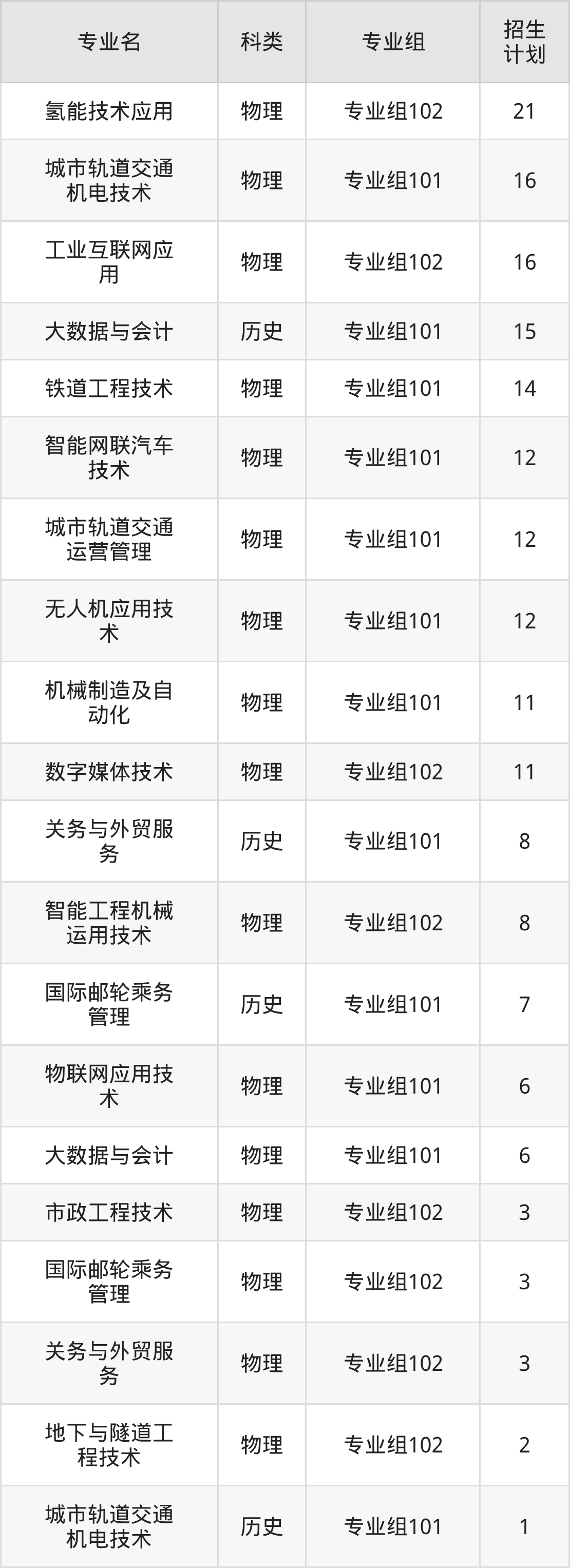 值得注意的是,四川交通职业技术学院在专科批招生,招生类型为物理类、历史类。篇幅有限,这里仅附上四川交通职业技术学院在四川省内招生计划详情: