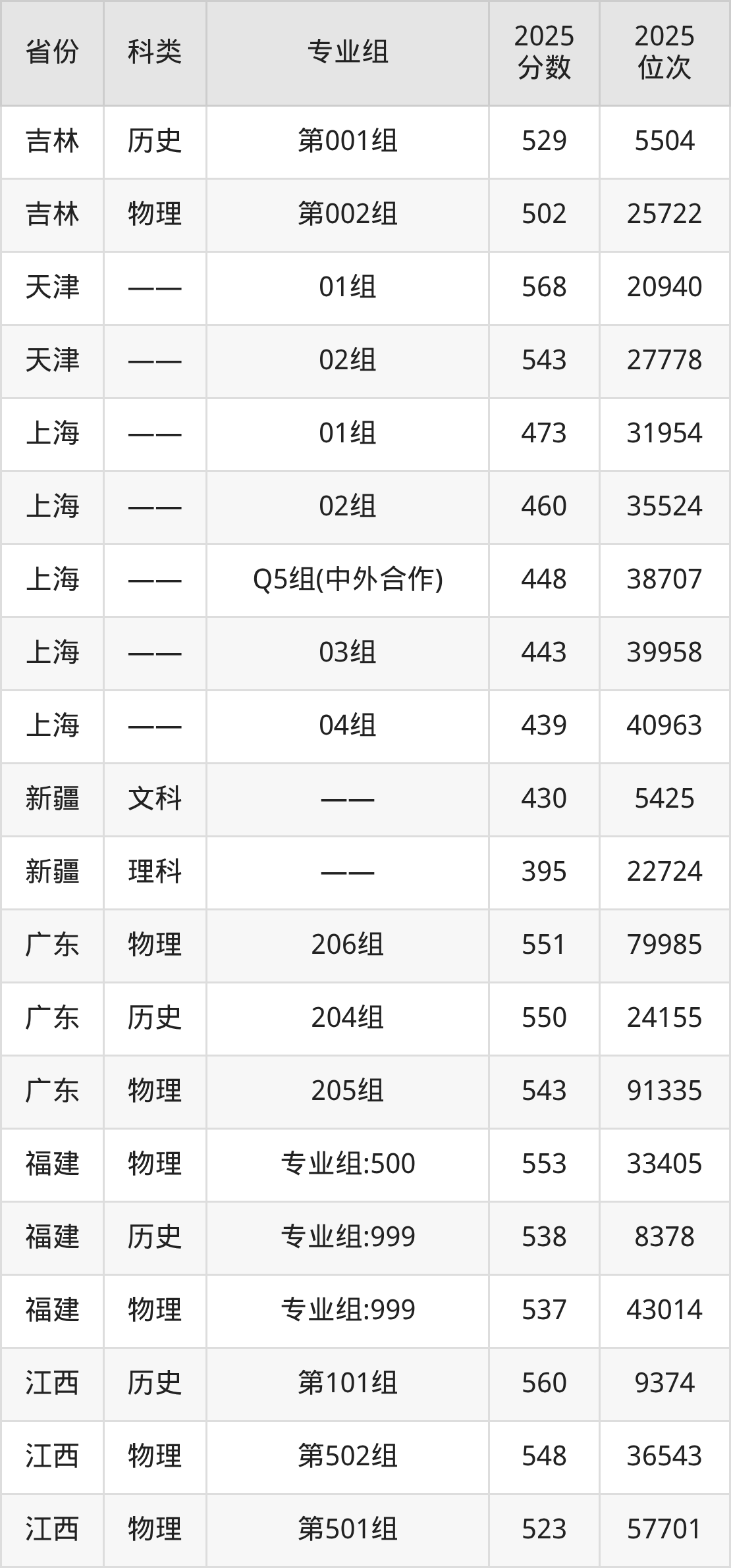 除上述省份外,上海商学院2025各省录取最低分详情见下:
