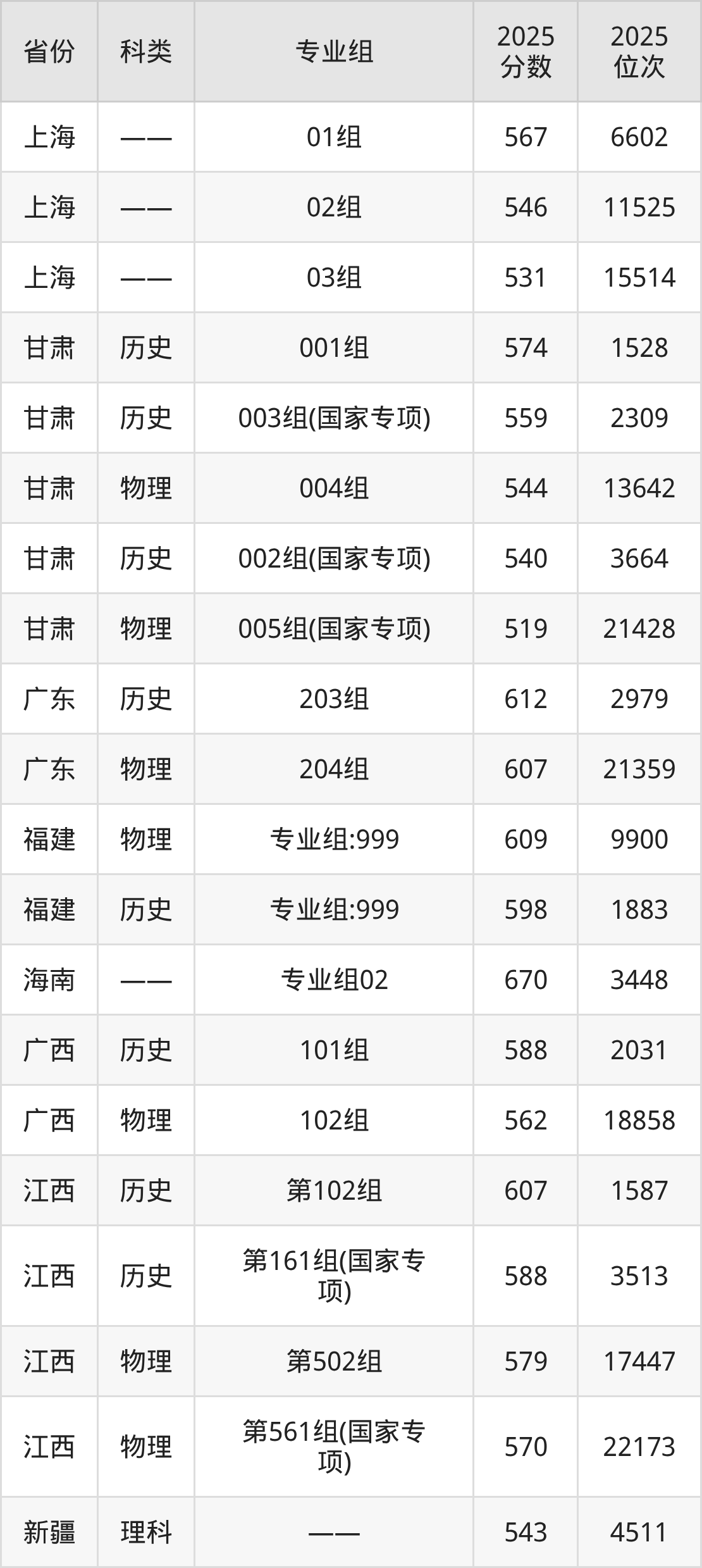除上述省份外,华东政法大学2025各省录取最低分详情见下: