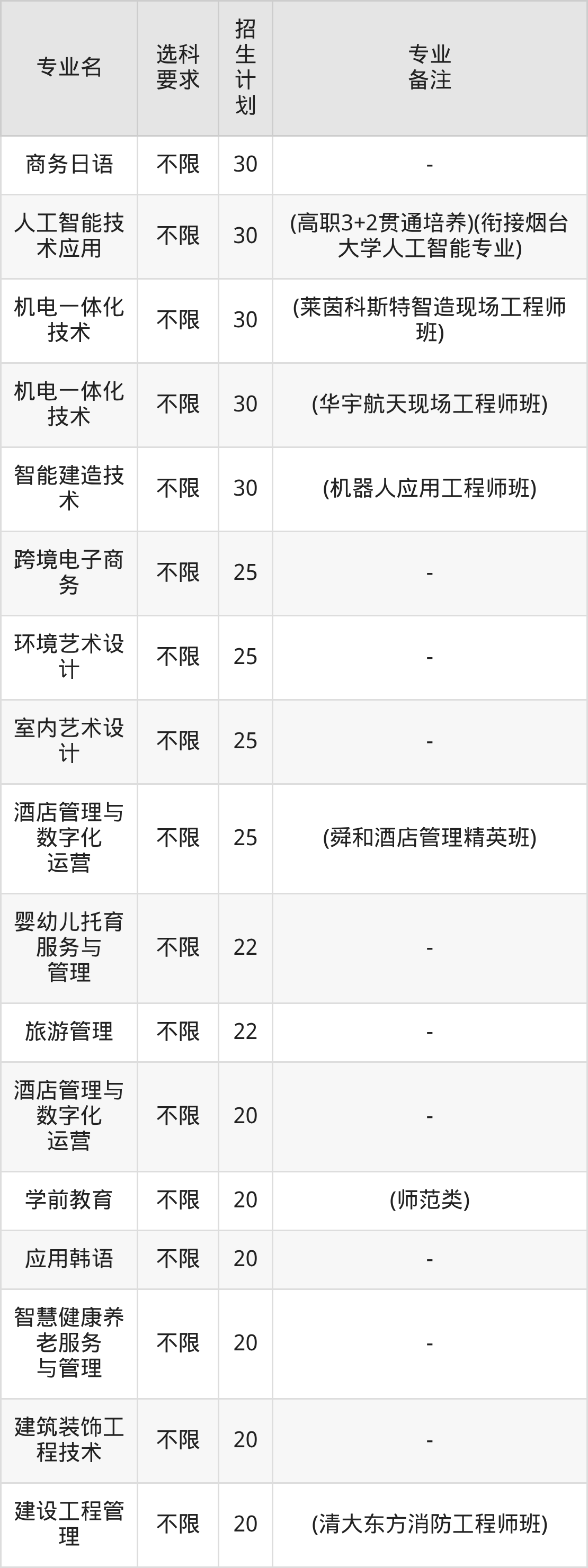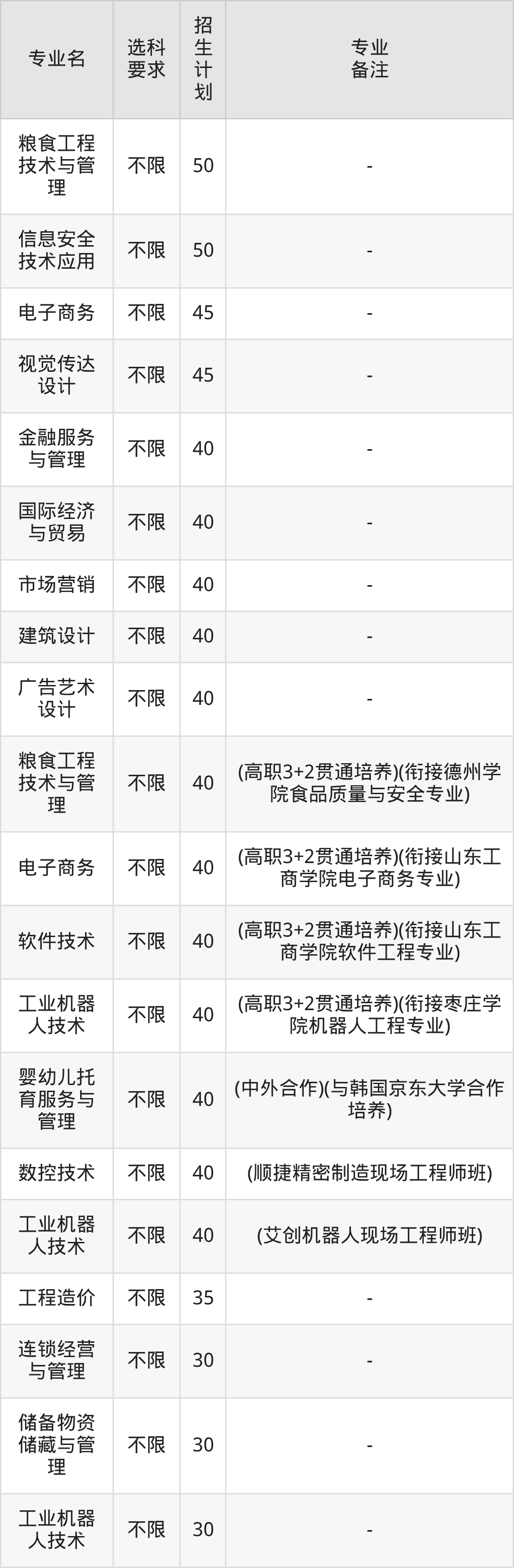 值得注意的是,山东商务职业学院在专科批招生,招生类型为普通类。篇幅有限,这里仅附上山东商务职业学院在山东省内招生计划详情: