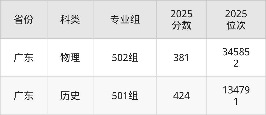2025年广东潮州卫生健康职业学院在广东省录取最低分为381分,对应最低分专业组为502组,位次在345852名及以内的物理类考生有机会被录取。而结合批次线来看,考生至少要超专科线166分才达院校收分门槛。