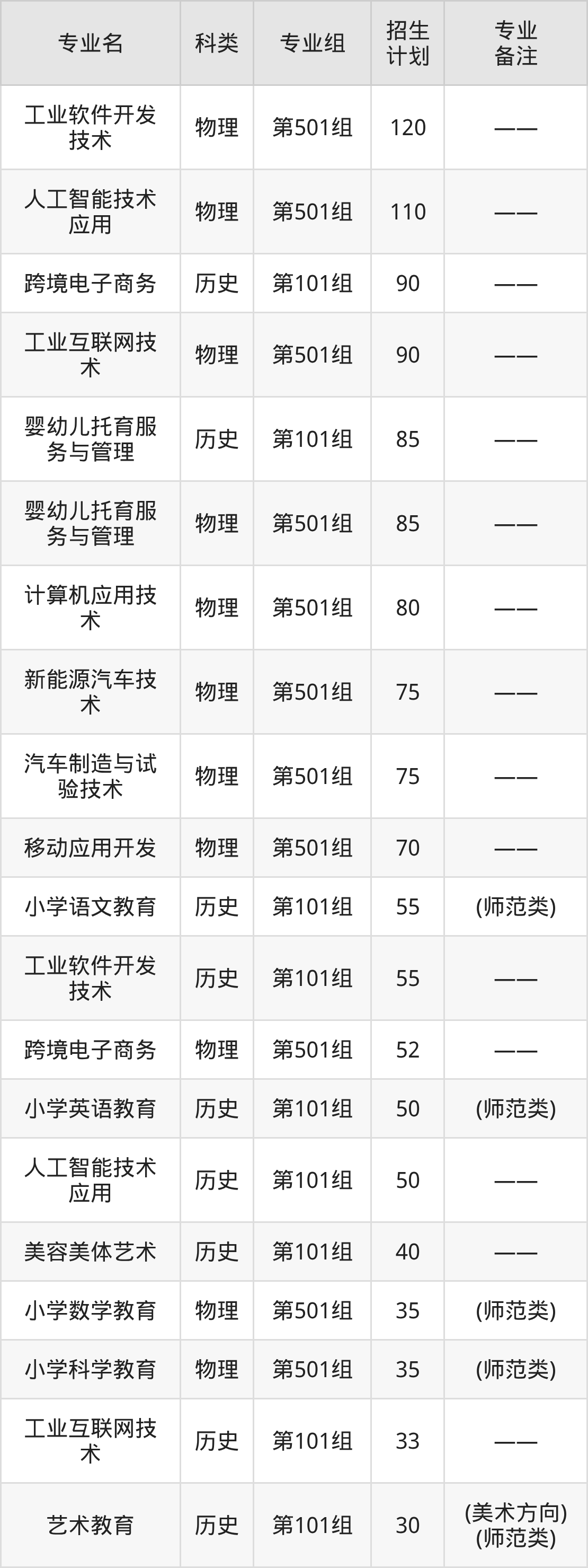 值得注意的是,抚州幼儿师范高等专科学校在专科批招生,招生类型为物理类、历史类。篇幅有限,这里仅附上抚州幼儿师范高等专科学校在江西省内招生计划详情: