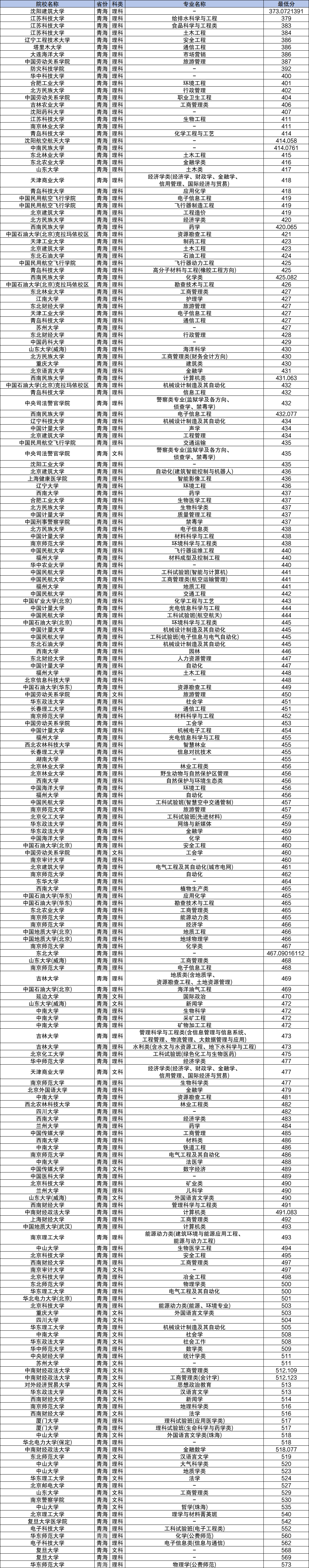 2024年青海国家专项计划理科录取分数线373.072139104分到573分之间,分数线最低的是沈阳建筑大学、分数线最高的是华东师范大学物理学专业。