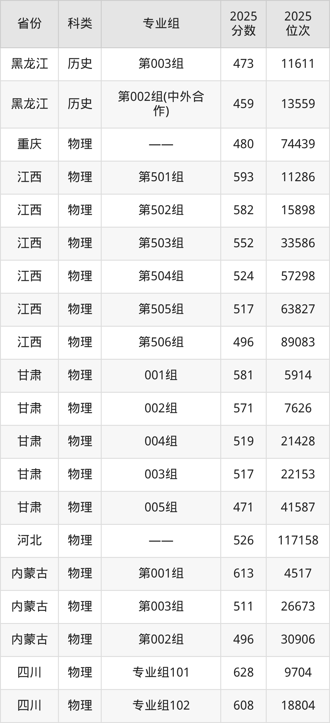 3、黑龙江:最低分459分,对应最低分专业组为历史类第002组(中外合作),位次13559名;