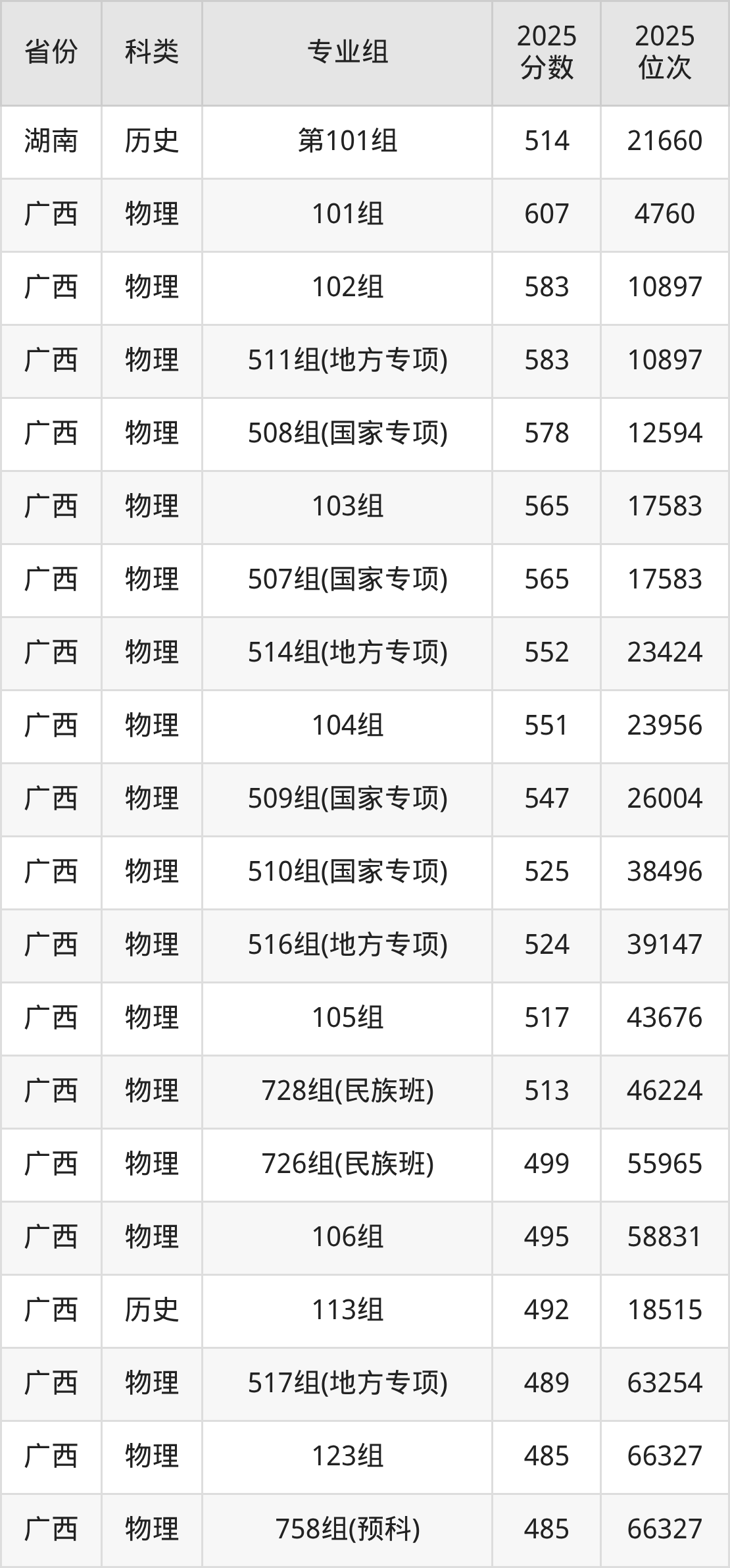 除上述省份外,广西医科大学2025各省录取最低分详情见下: