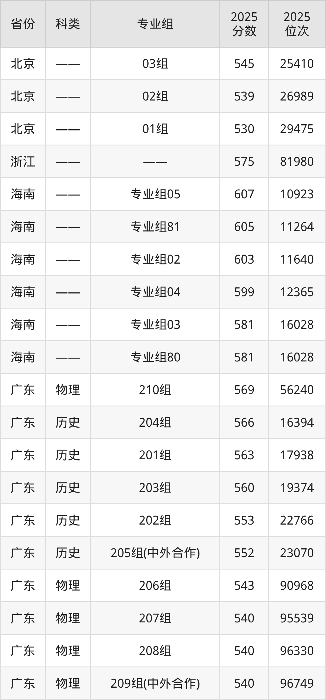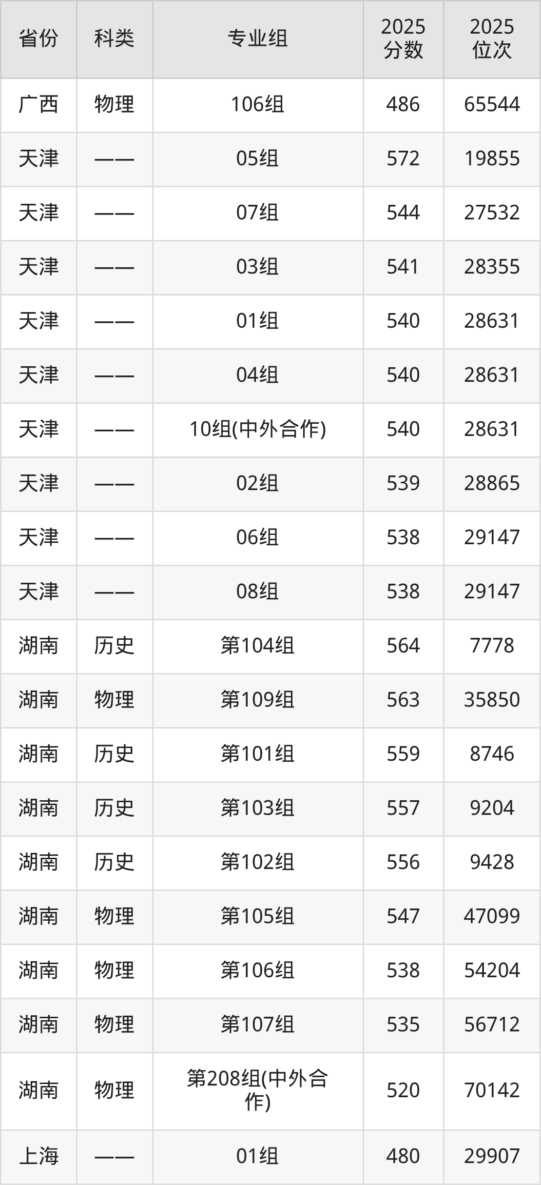 除上述省份外,天津外国语大学2025各省录取最低分详情见下: