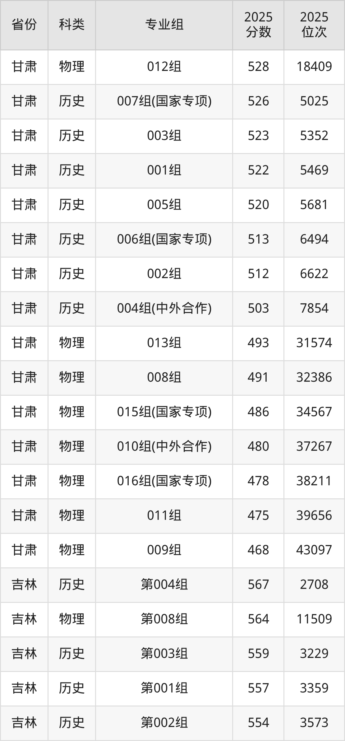 3、甘肃:最低分468分,对应最低分专业组为物理类009组,位次43097名;