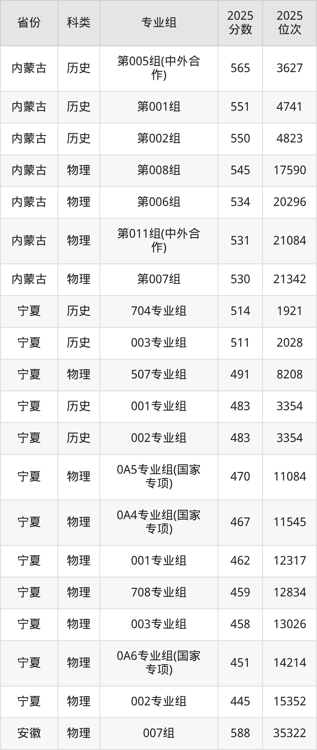 2、宁夏:最低分445分,对应最低分专业组为物理类002专业组,位次15352名;