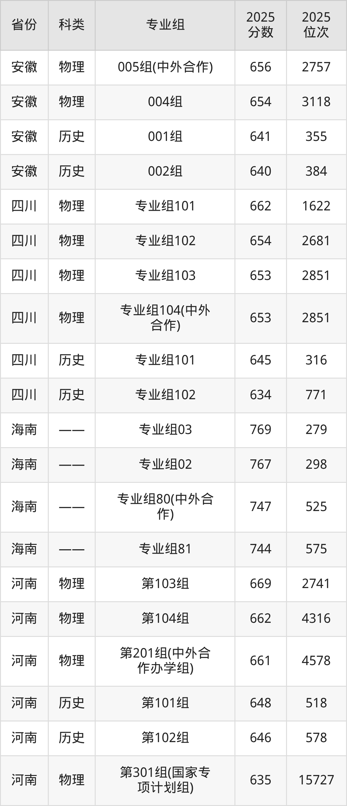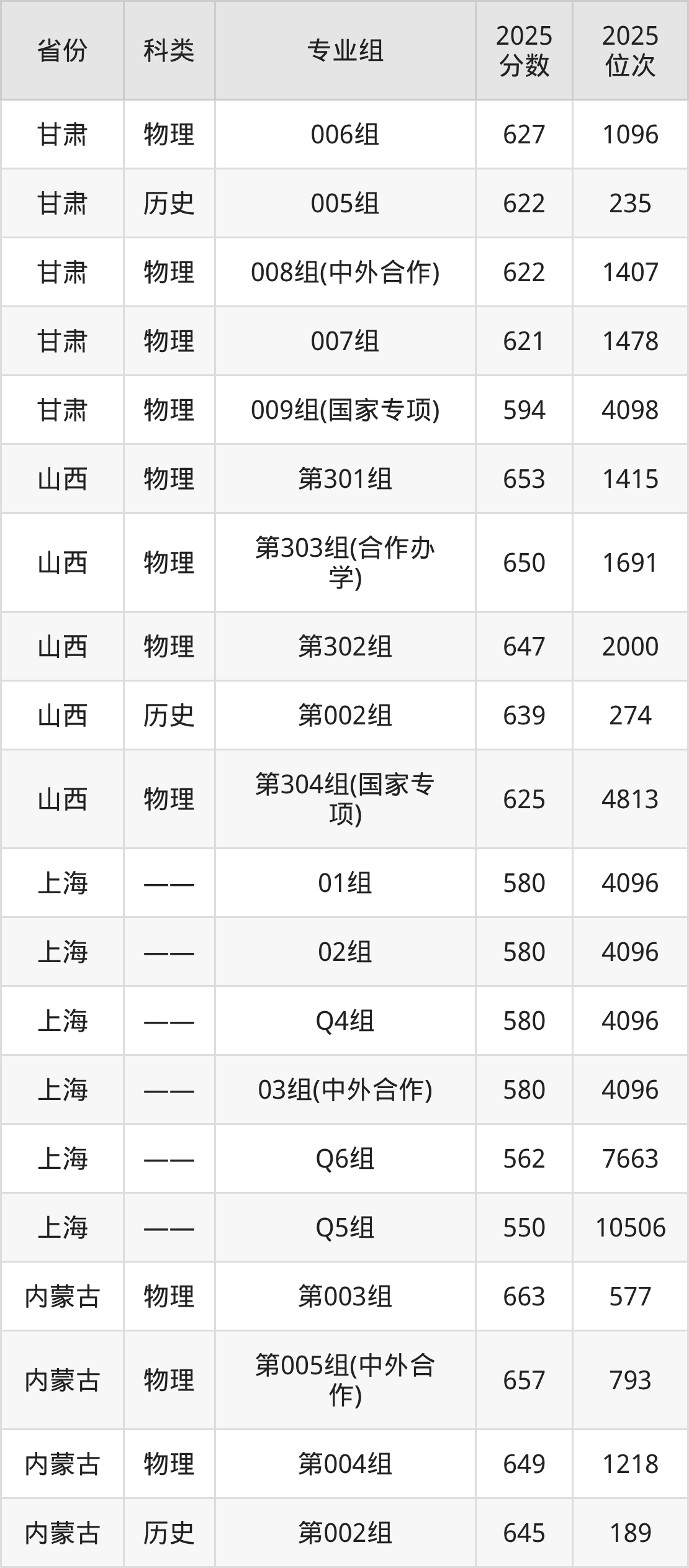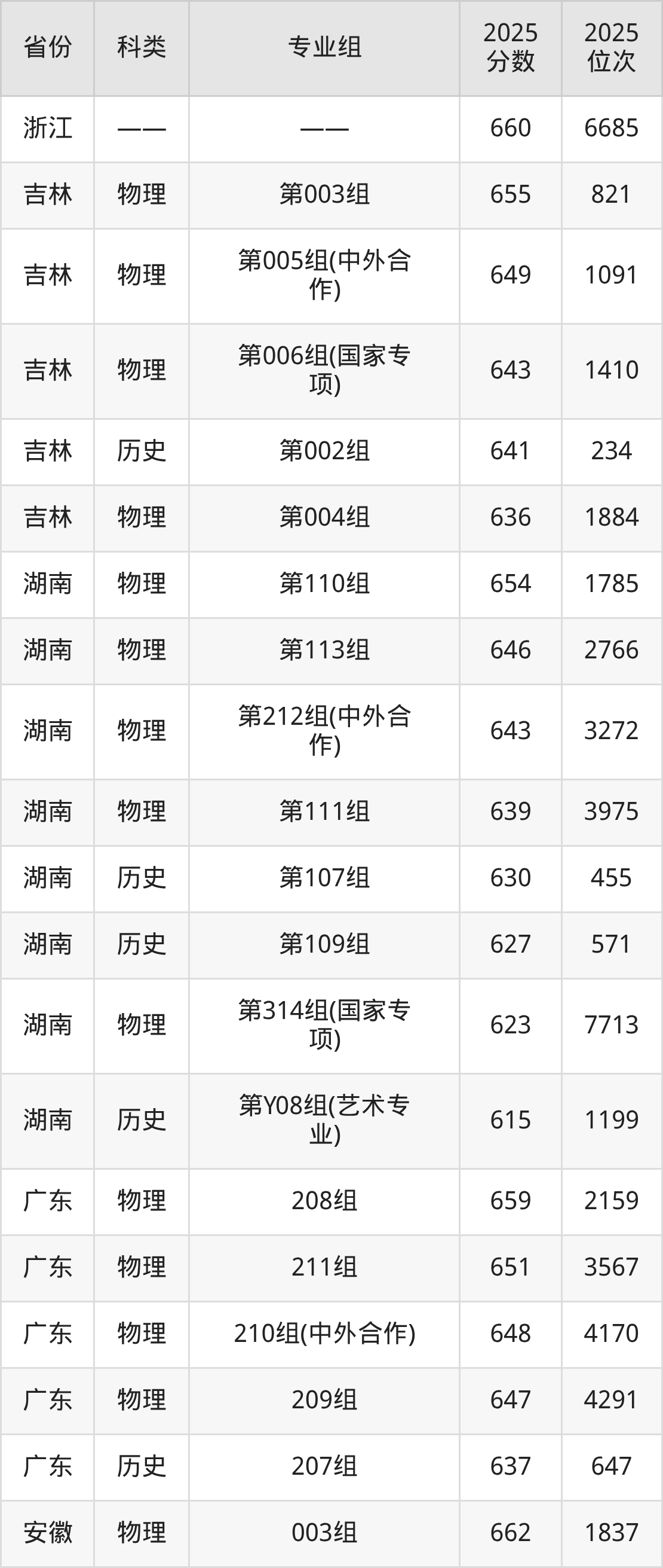 除上述省份外,同济大学2025各省录取最低分详情见下: