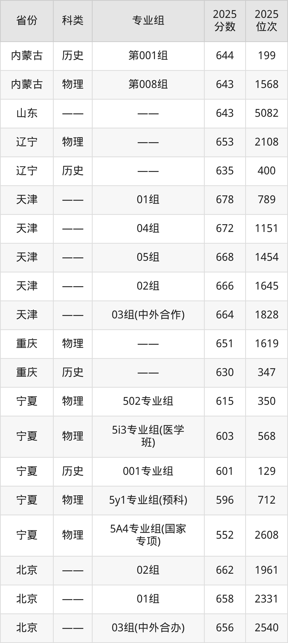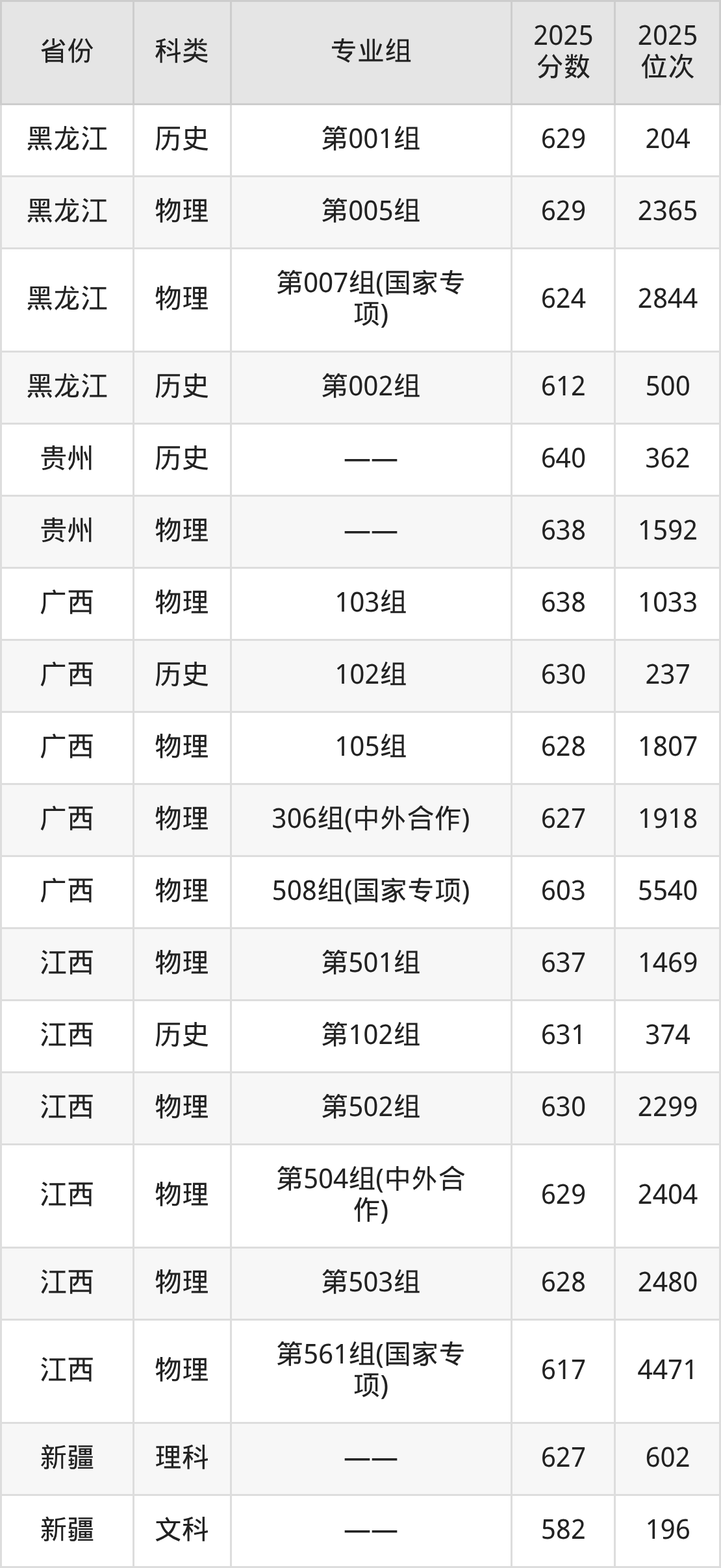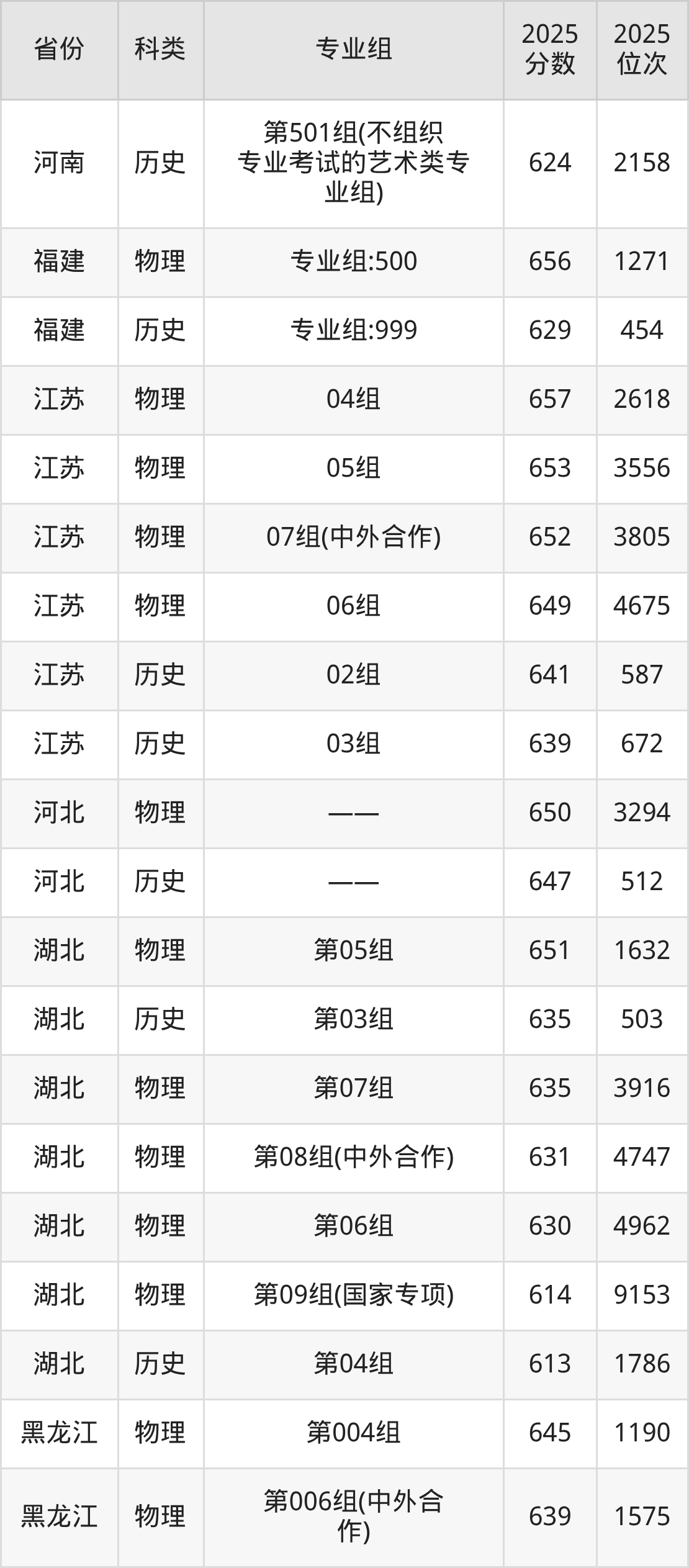 除上述省份外,同济大学2025各省录取最低分详情见下: