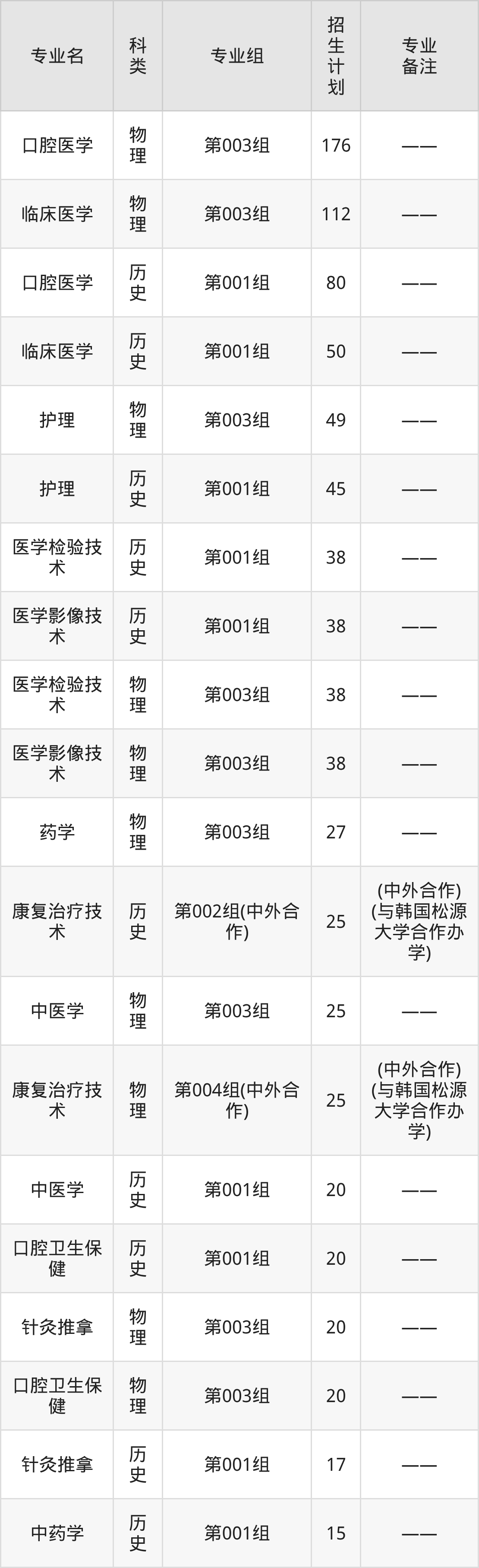 第一名:吉林(964人),招生人数最多的专业是口腔医学(176人、物理类)。
