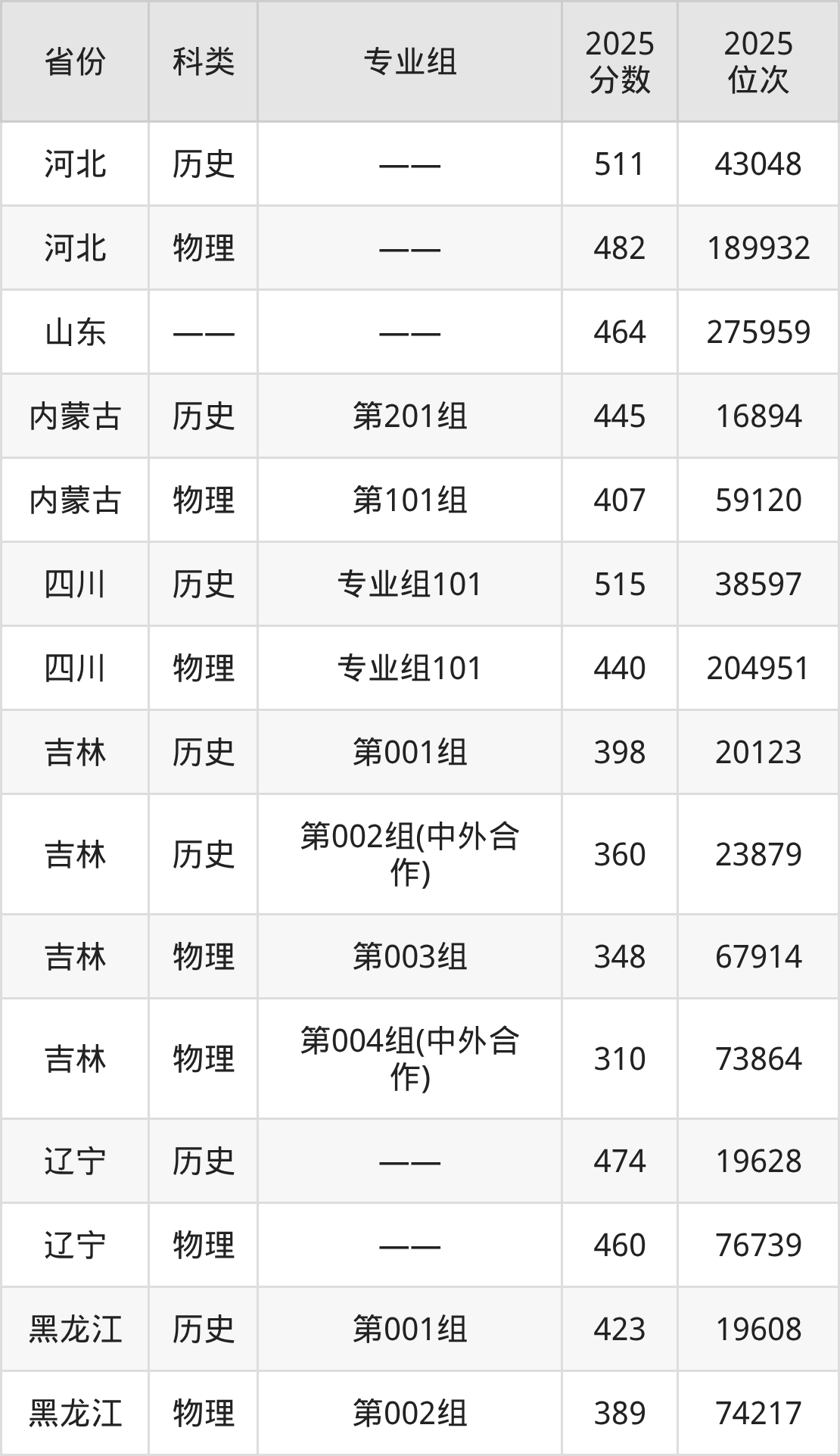 除上述省份外,白城医学高等专科学校2025各省录取最低分详情见下: