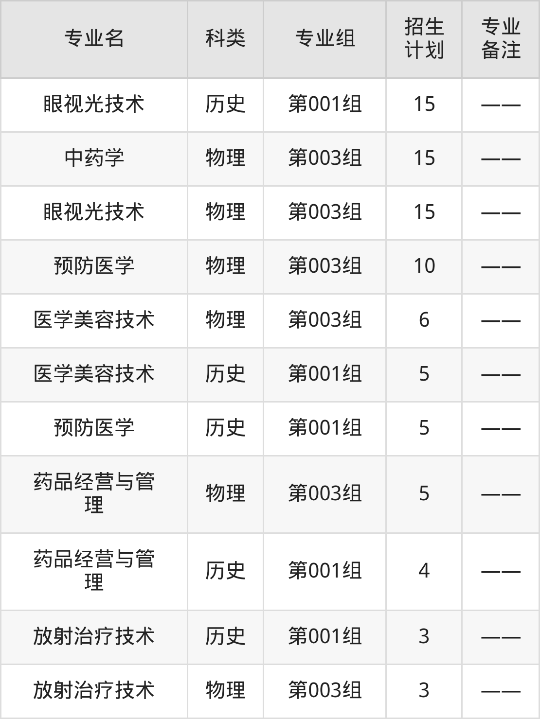 值得注意的是,白城医学高等专科学校在专科批招生,招生类型为物理类、历史类。篇幅有限,这里仅附上白城医学高等专科学校在吉林省内招生计划详情: